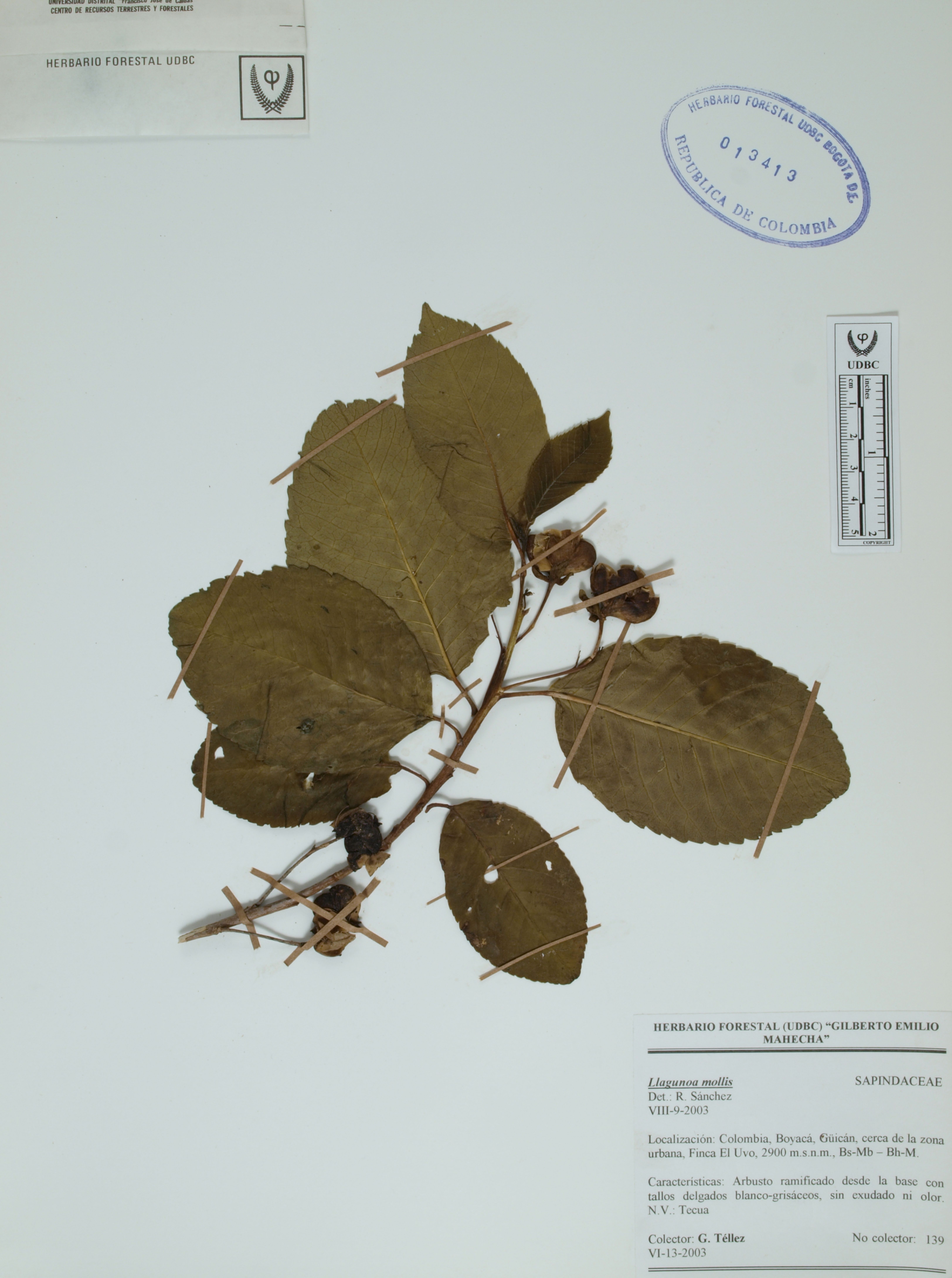 Fotografía del ejemplar Téllez, G. 139, determinado como Llagunoa mollis en el año 2003