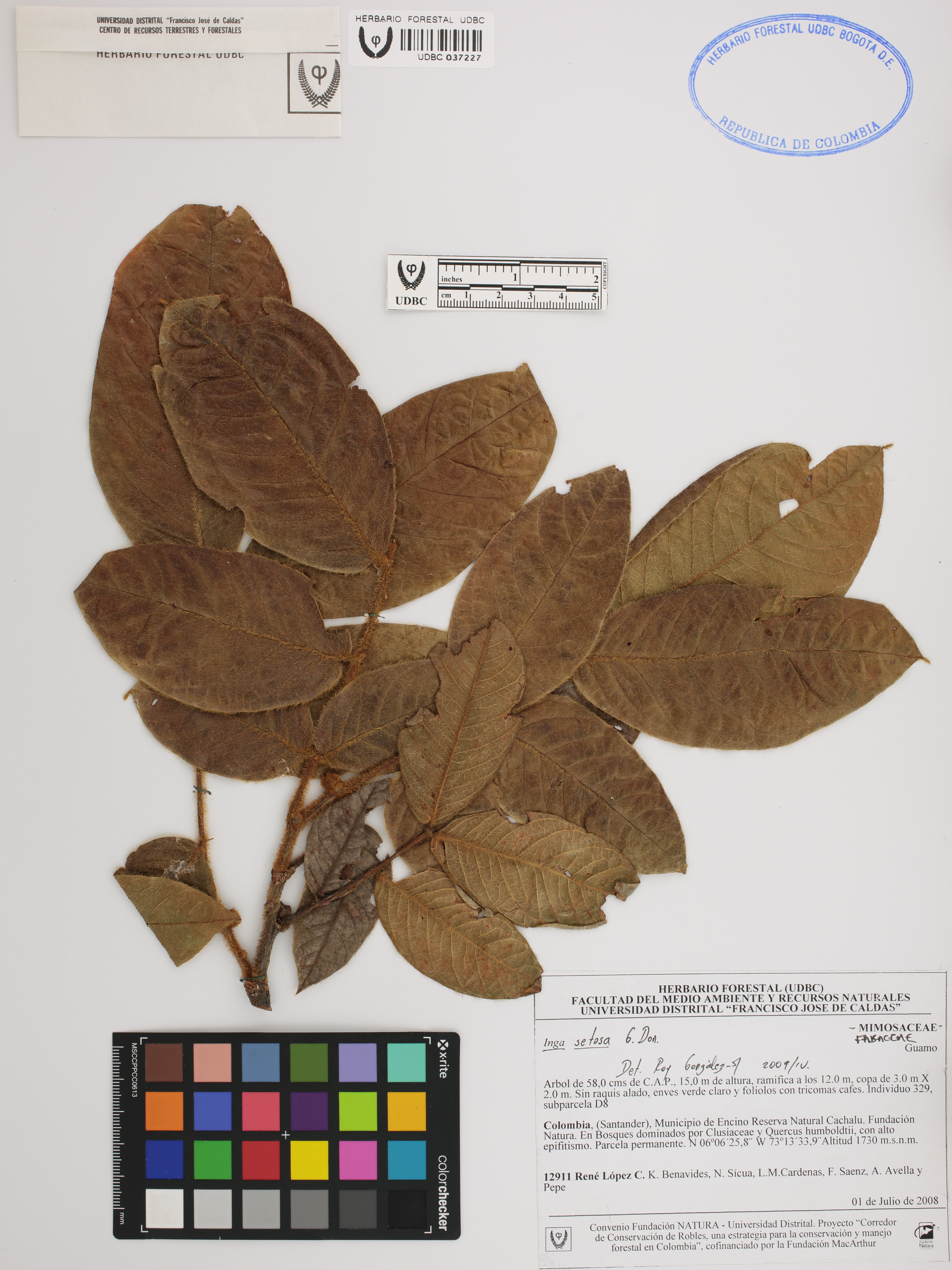Fotografía del ejemplar López, R. 12911, determinado como Inga setosa en el año 2009