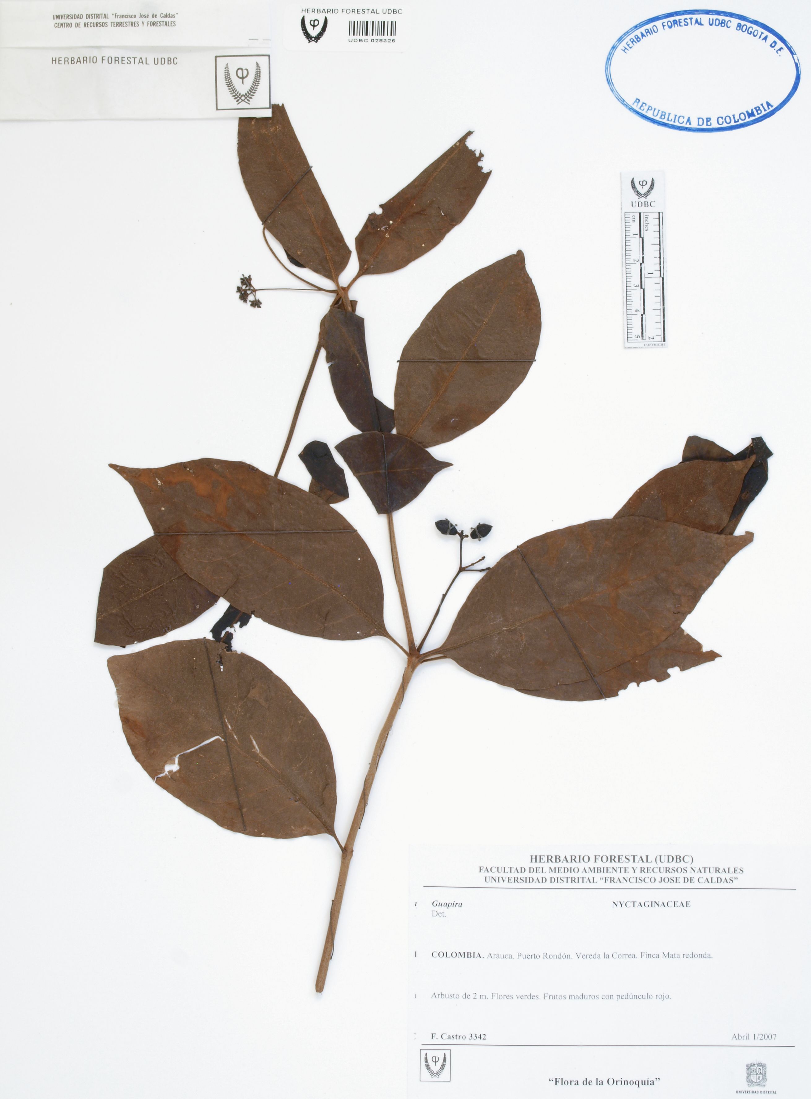 Fotografía del ejemplar Castro, F. 3342, determinado como Guapira sp.