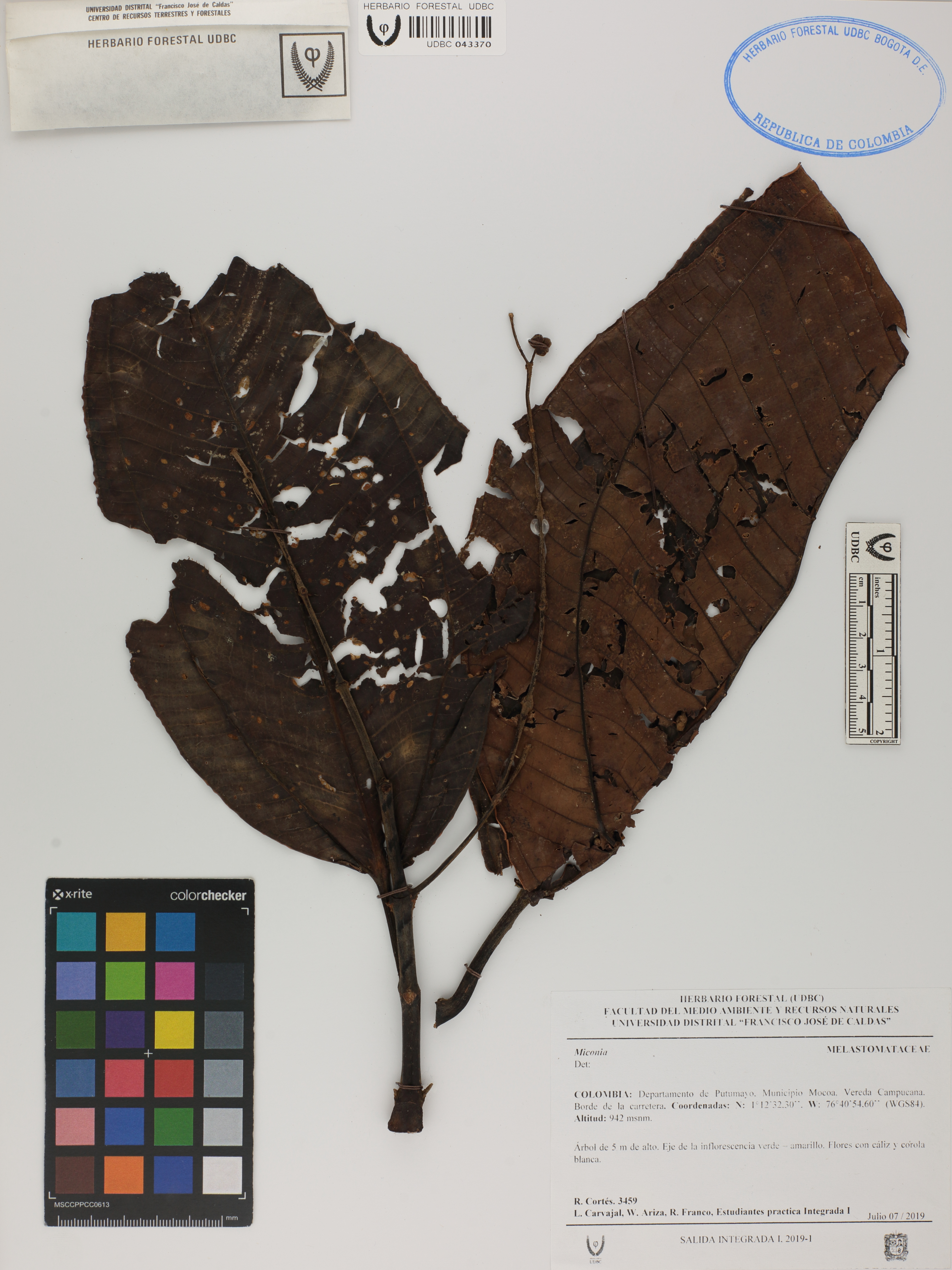 Fotografía del ejemplar Cortés, R. 3459, determinado como Miconia sp.