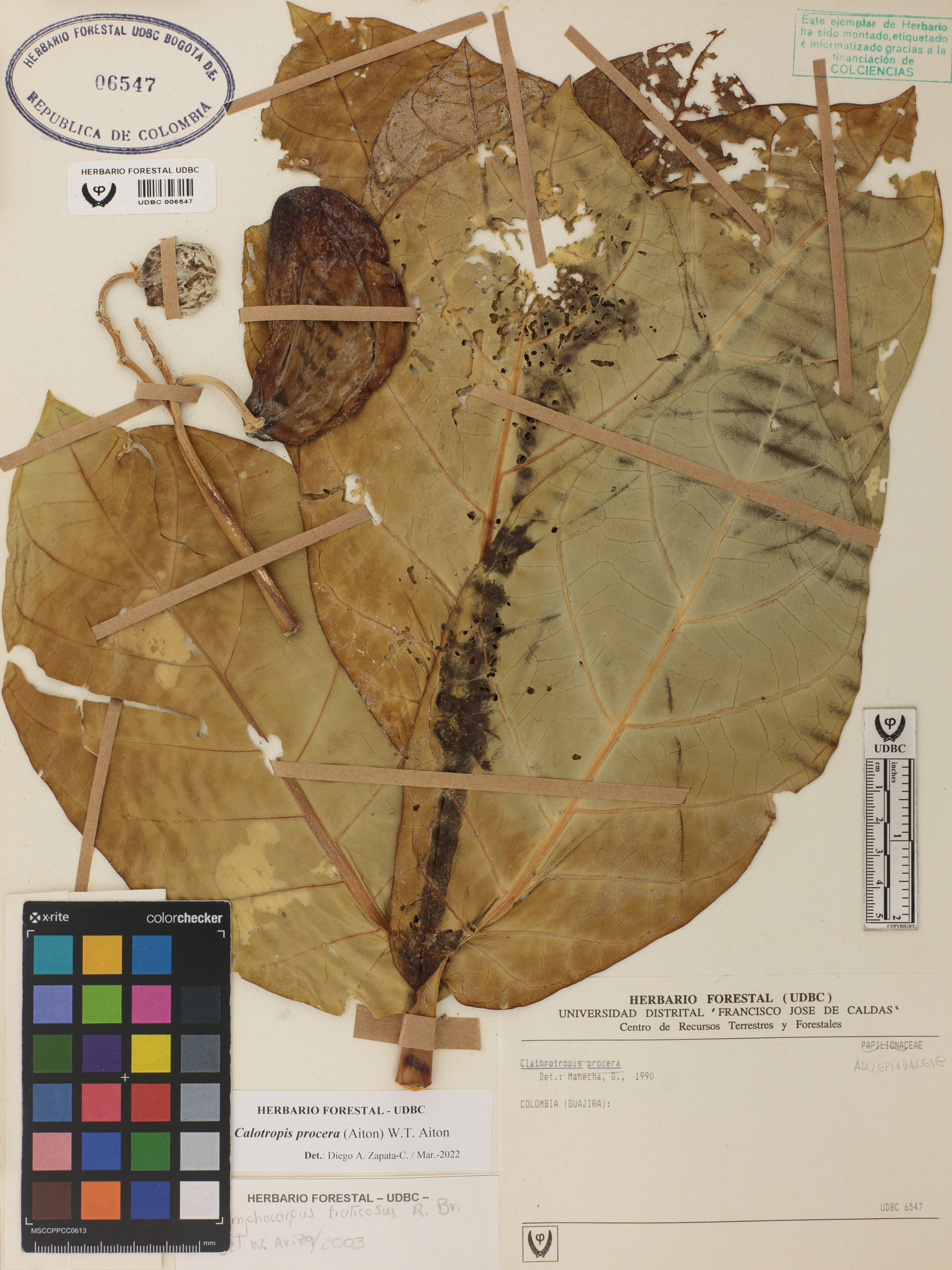 Fotografía del ejemplar SD, determinado como Calotropis procera en el año 2022