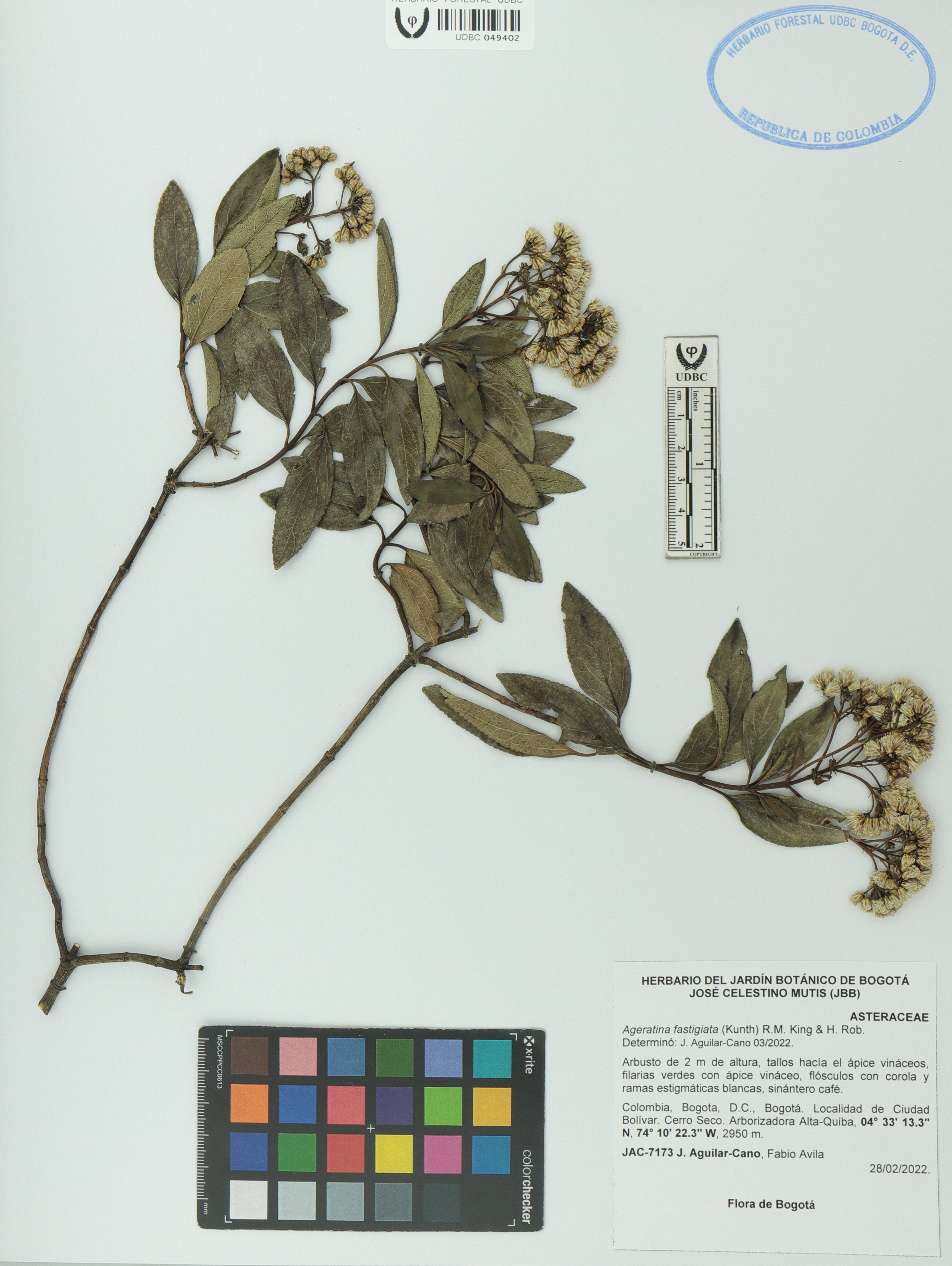 Fotografía del ejemplar Aguilar-Cano, J. 7173, determinado como Ageratina fastigiata en el año 2022