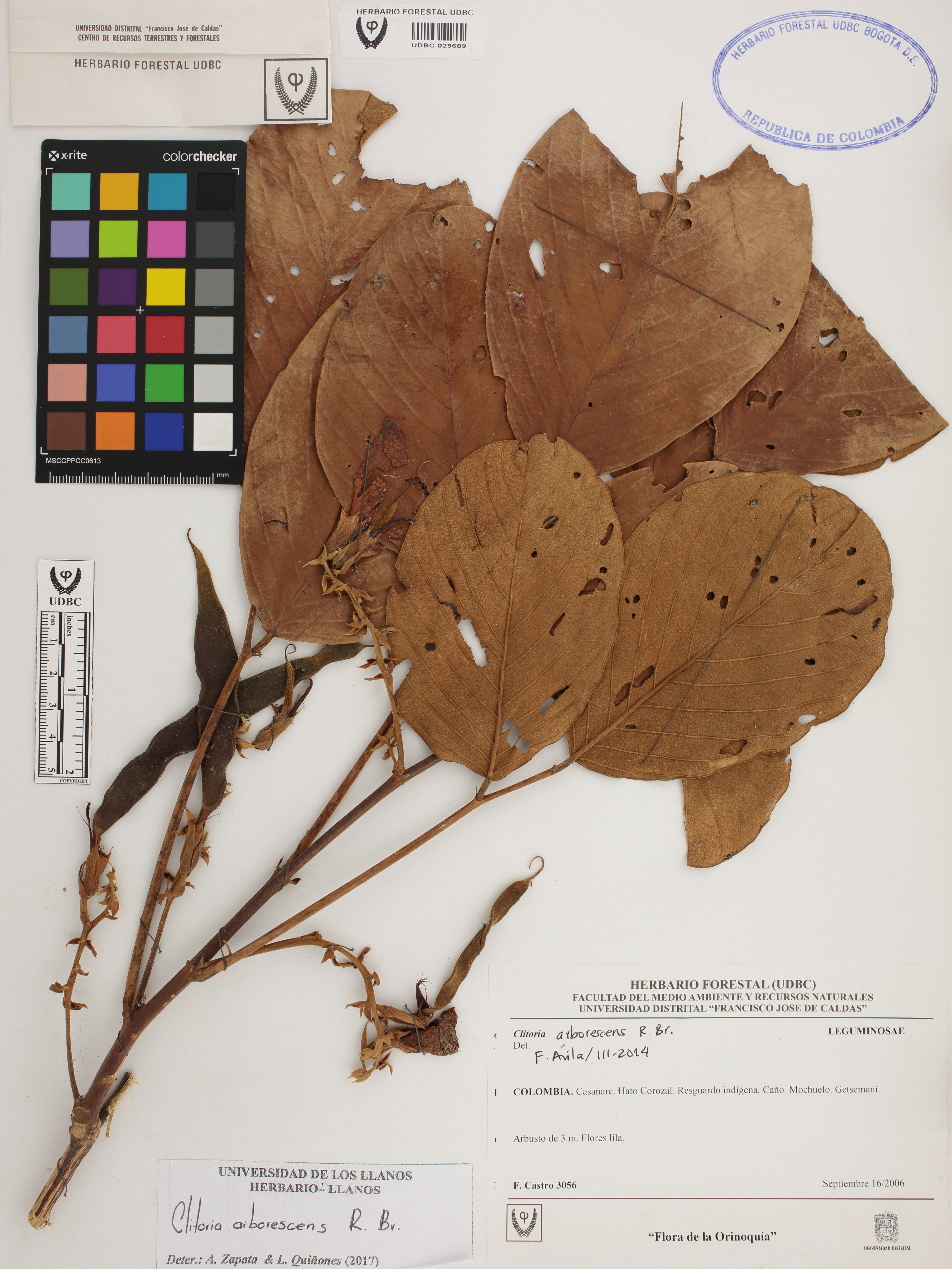 Fotografía del ejemplar Castro, F. 3056, determinado como Clitoria arborescens en el año 2014