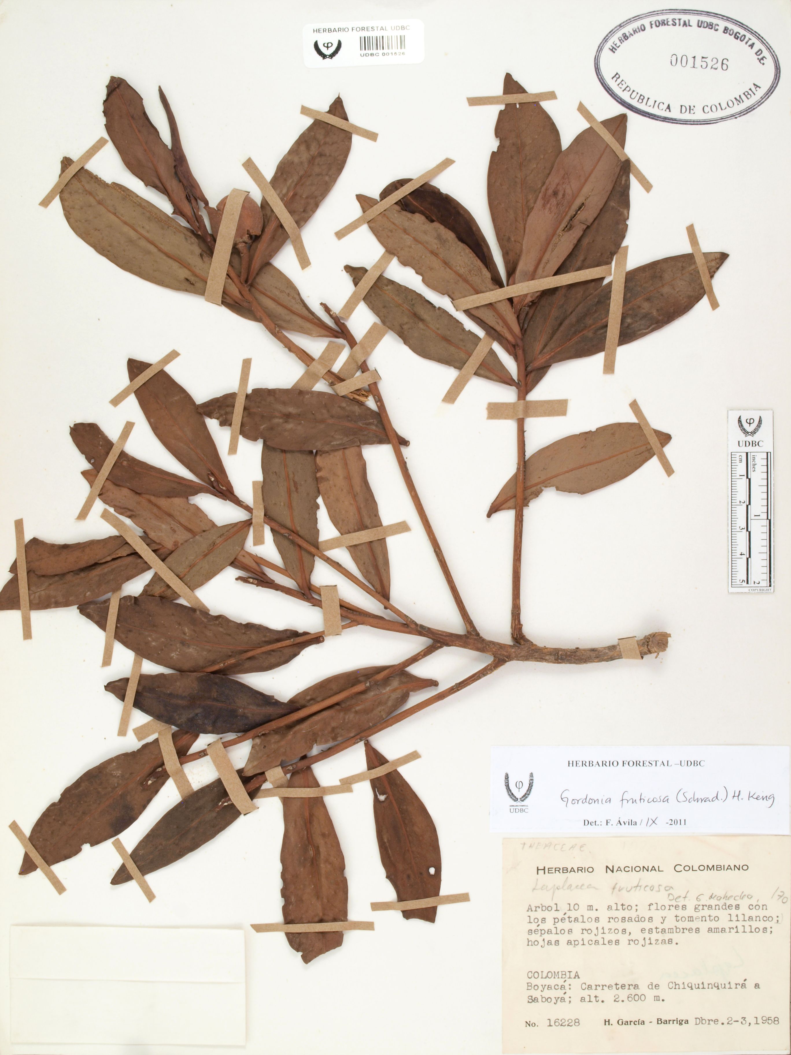 Fotografía del ejemplar García-B., H. 16228, determinado como Gordonia fruticosa en el año 2011