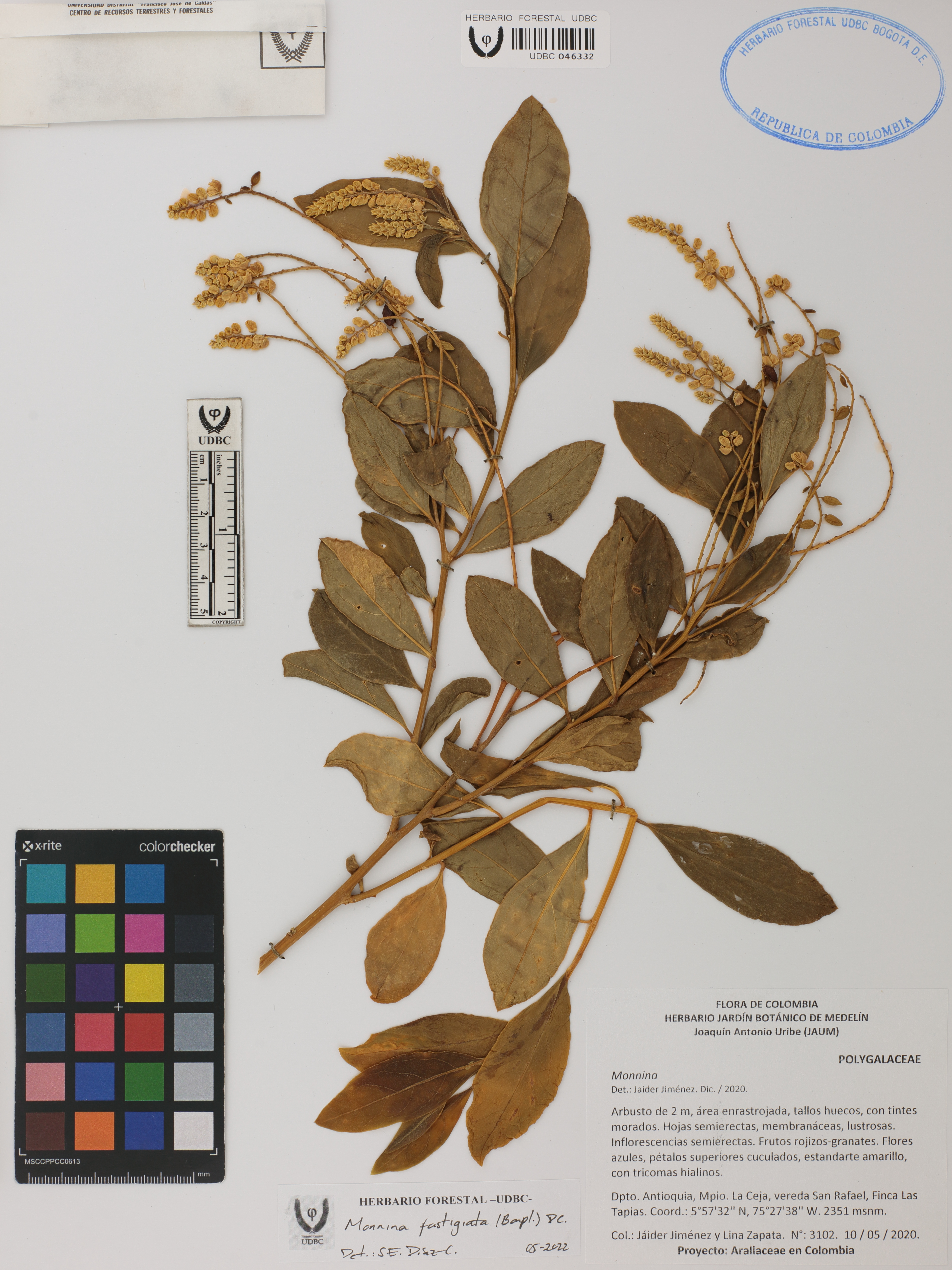 Fotografía del ejemplar Jiménez, J. 3102, determinado como Monnina fastigiata en el año 2022