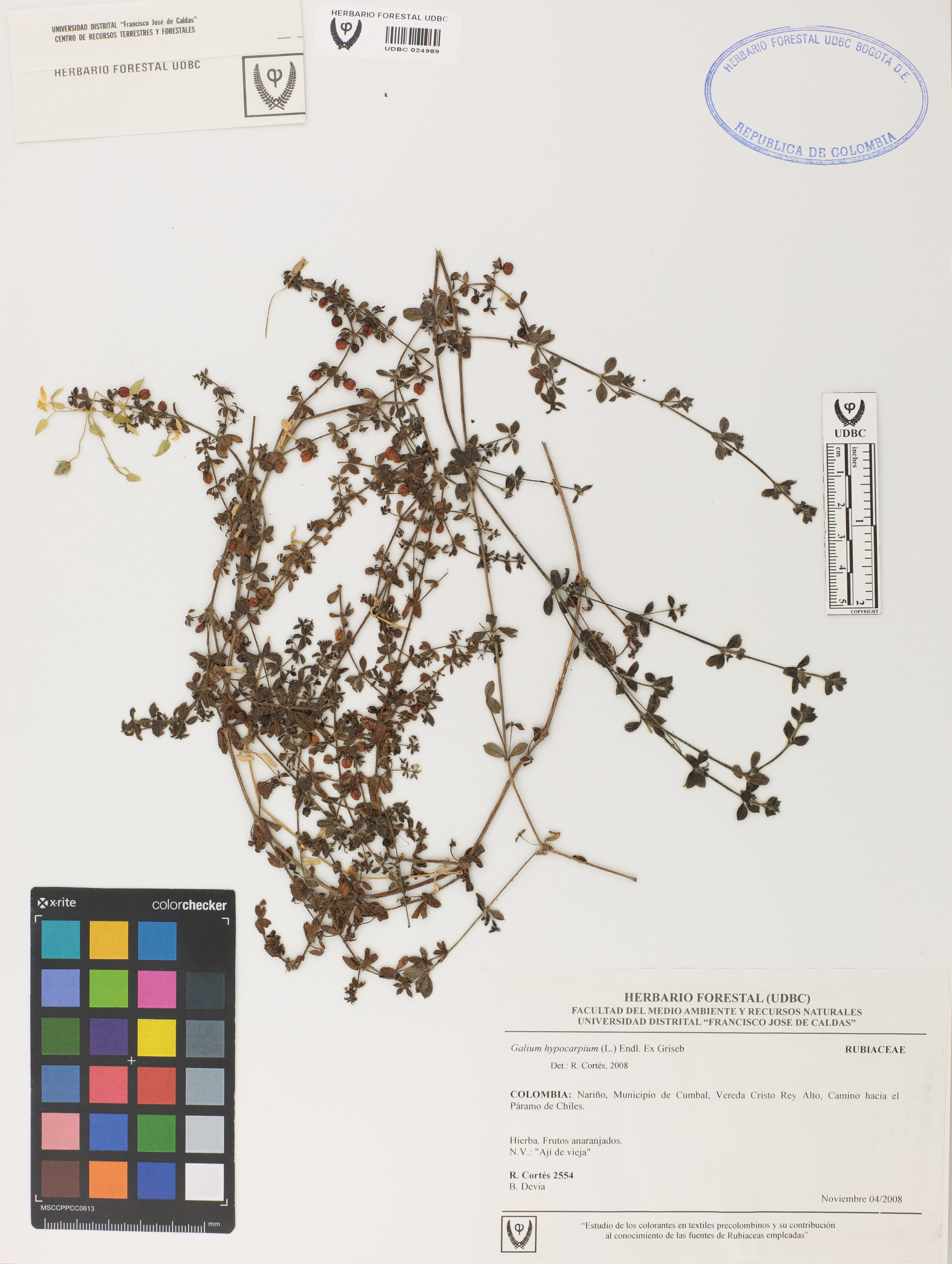 Fotografía del ejemplar Cortés-B., R. 2554, determinado como Galium hypocarpium en el año 2008