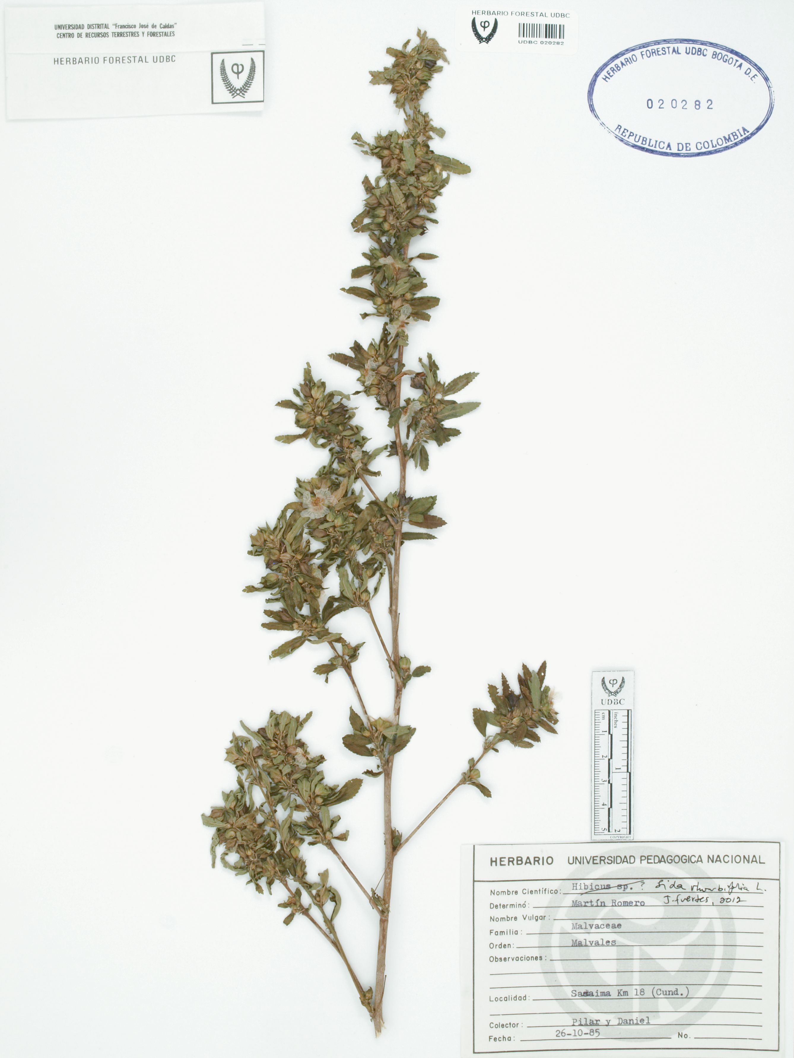 Fotografía del ejemplar Pilar,, determinado como Sida rhombifolia en el año 2012