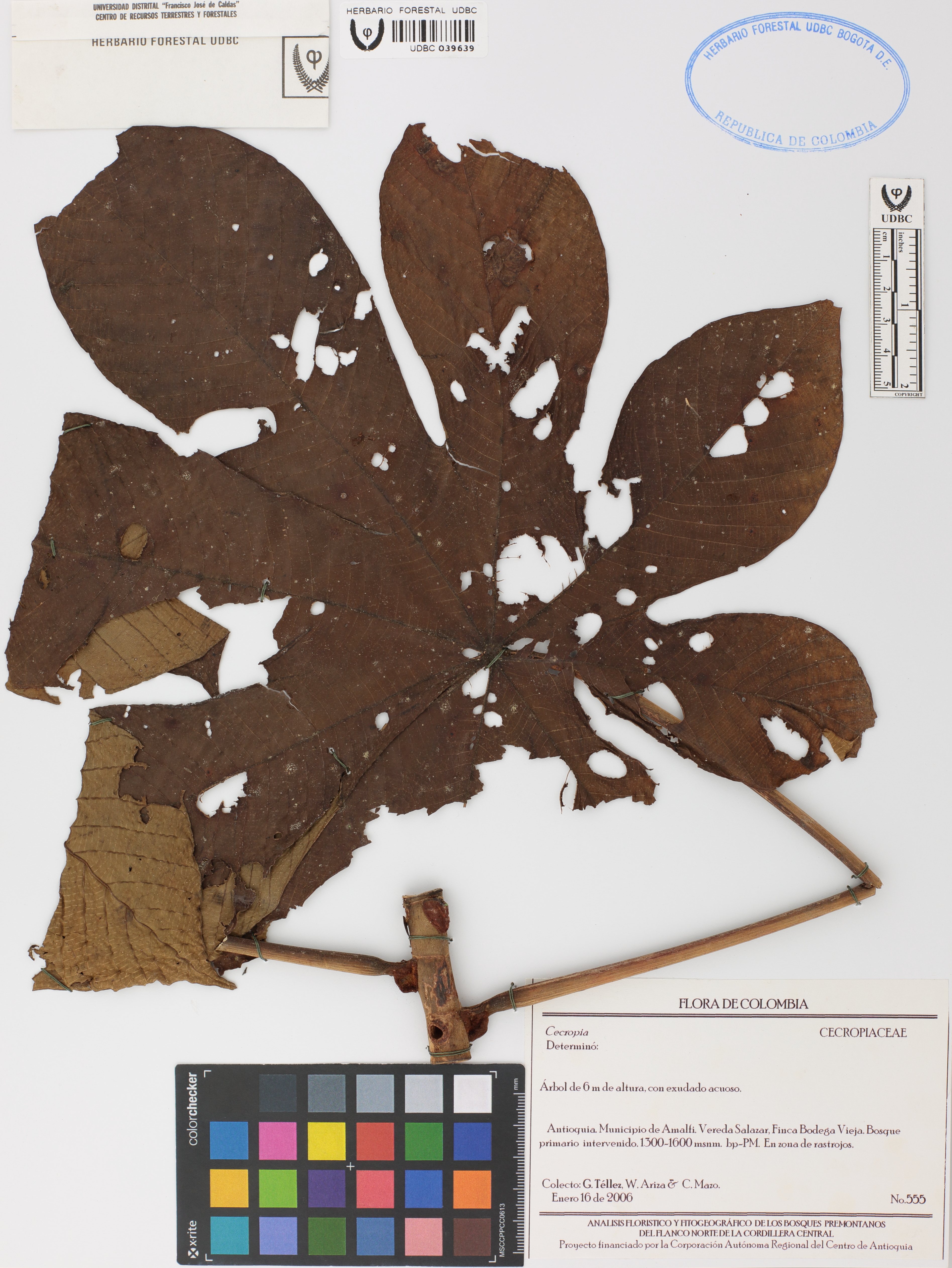| dc.description | Fotografía del ejemplar Téllez, G. 555, determinado como Cecropia sp. | |