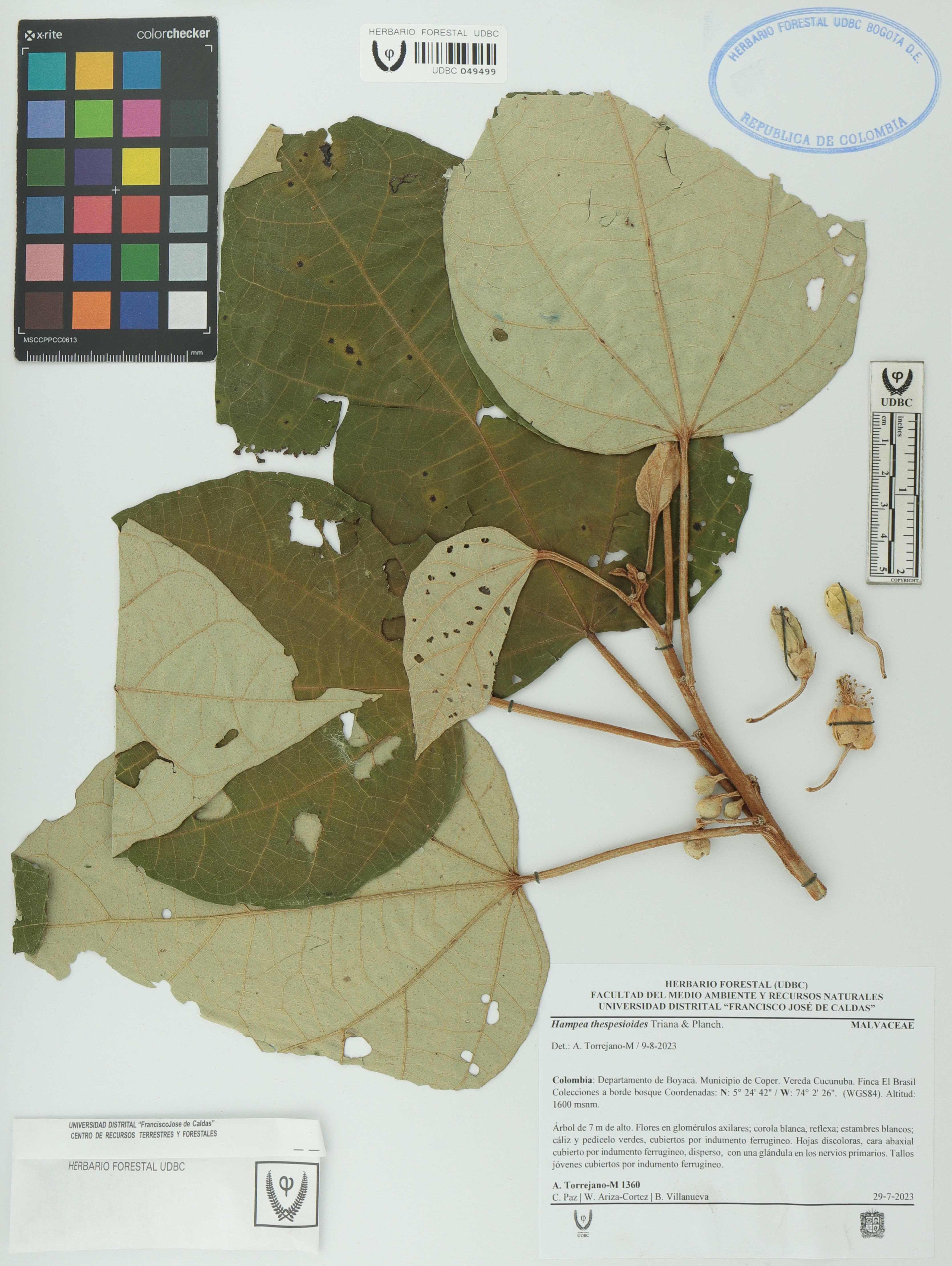 Fotografía del ejemplar Torrejano-M., A. 1360, determinado como Hampea thespesioides en el año 2023