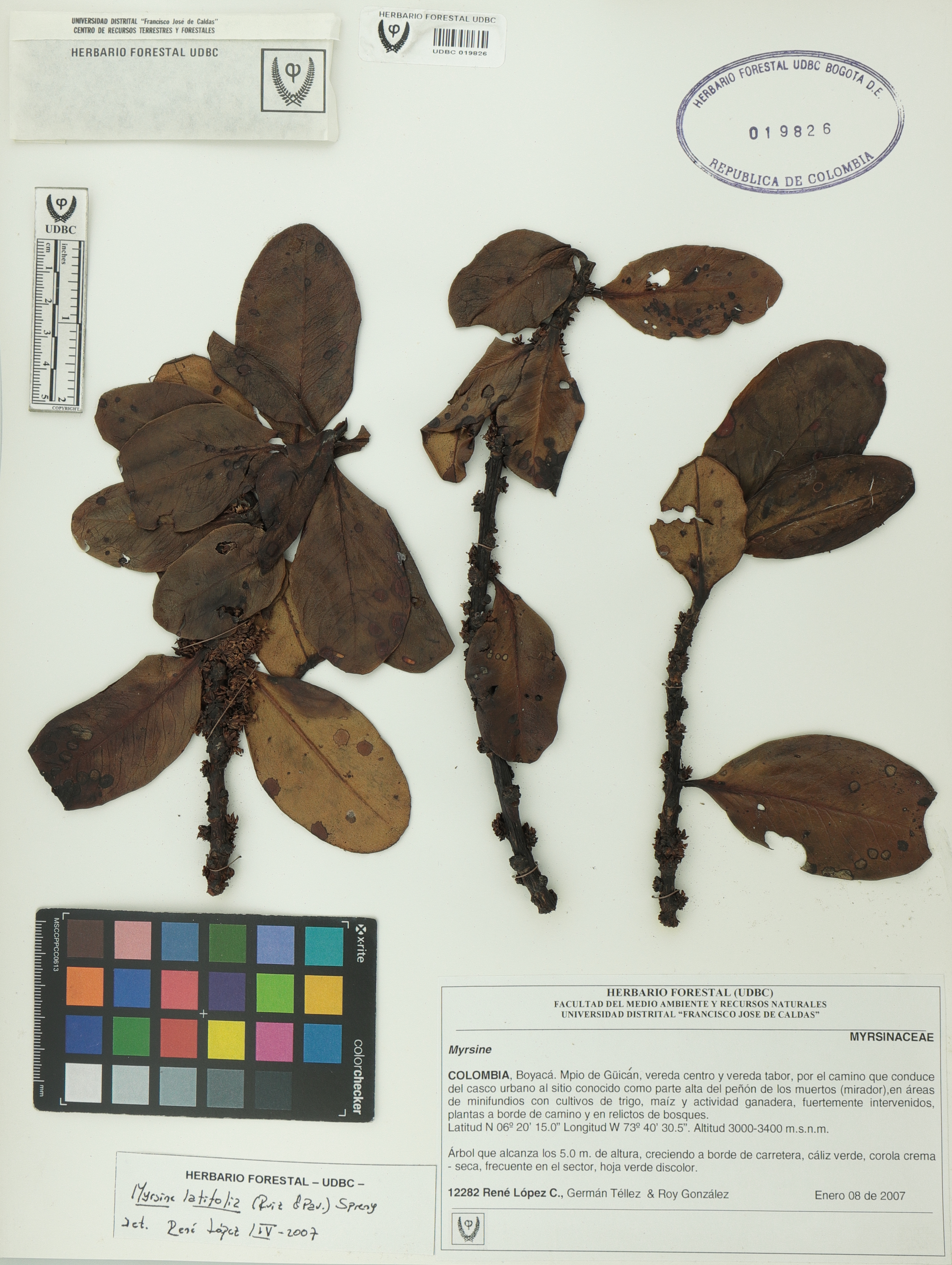 | dc.description | Fotografía del ejemplar López, R. 12282, determinado como Myrsine latifolia en el año 2007 | |