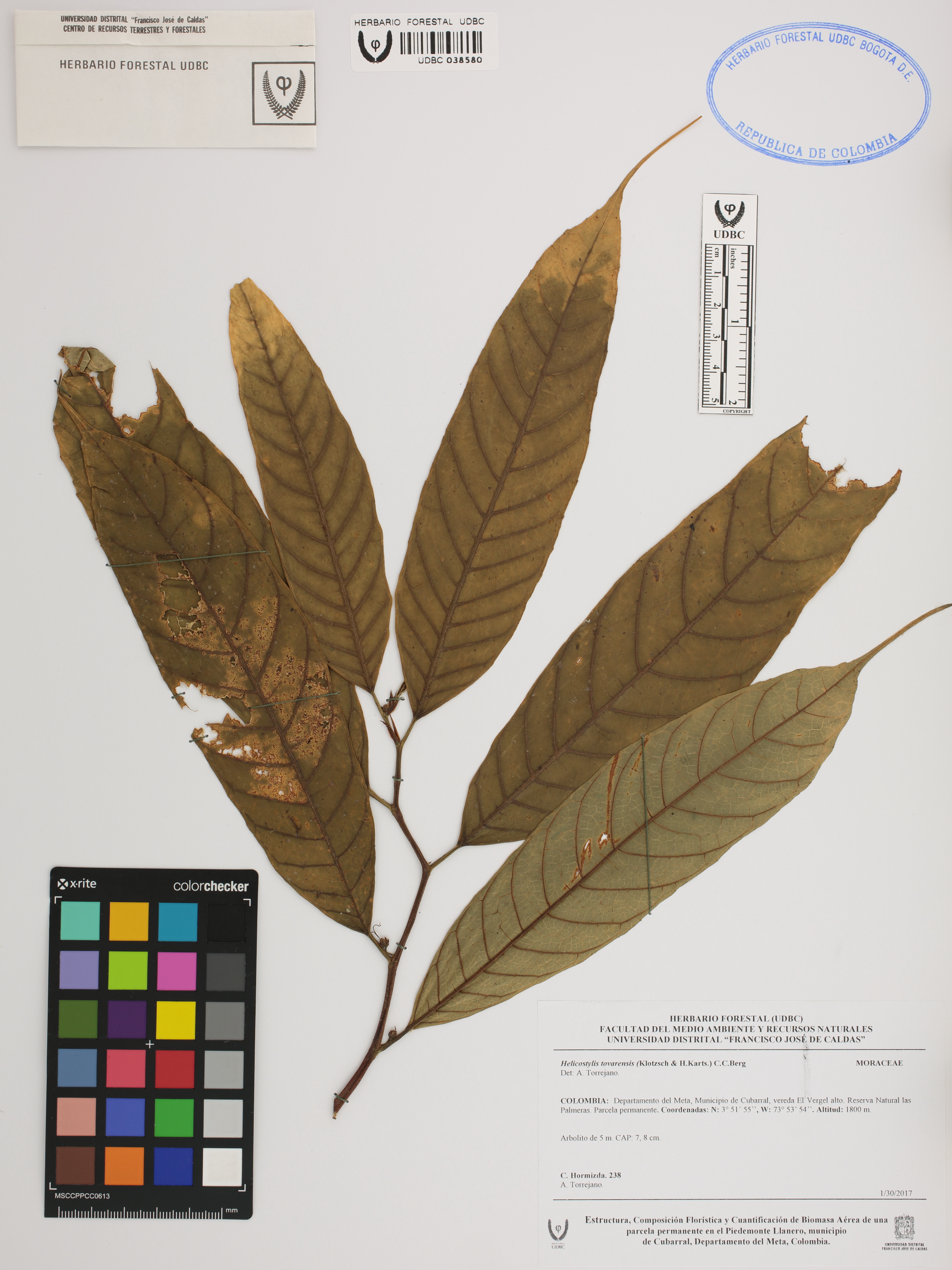 Fotografía del ejemplar Hormizda, C. 238, determinado como Helicostylis tovarensis