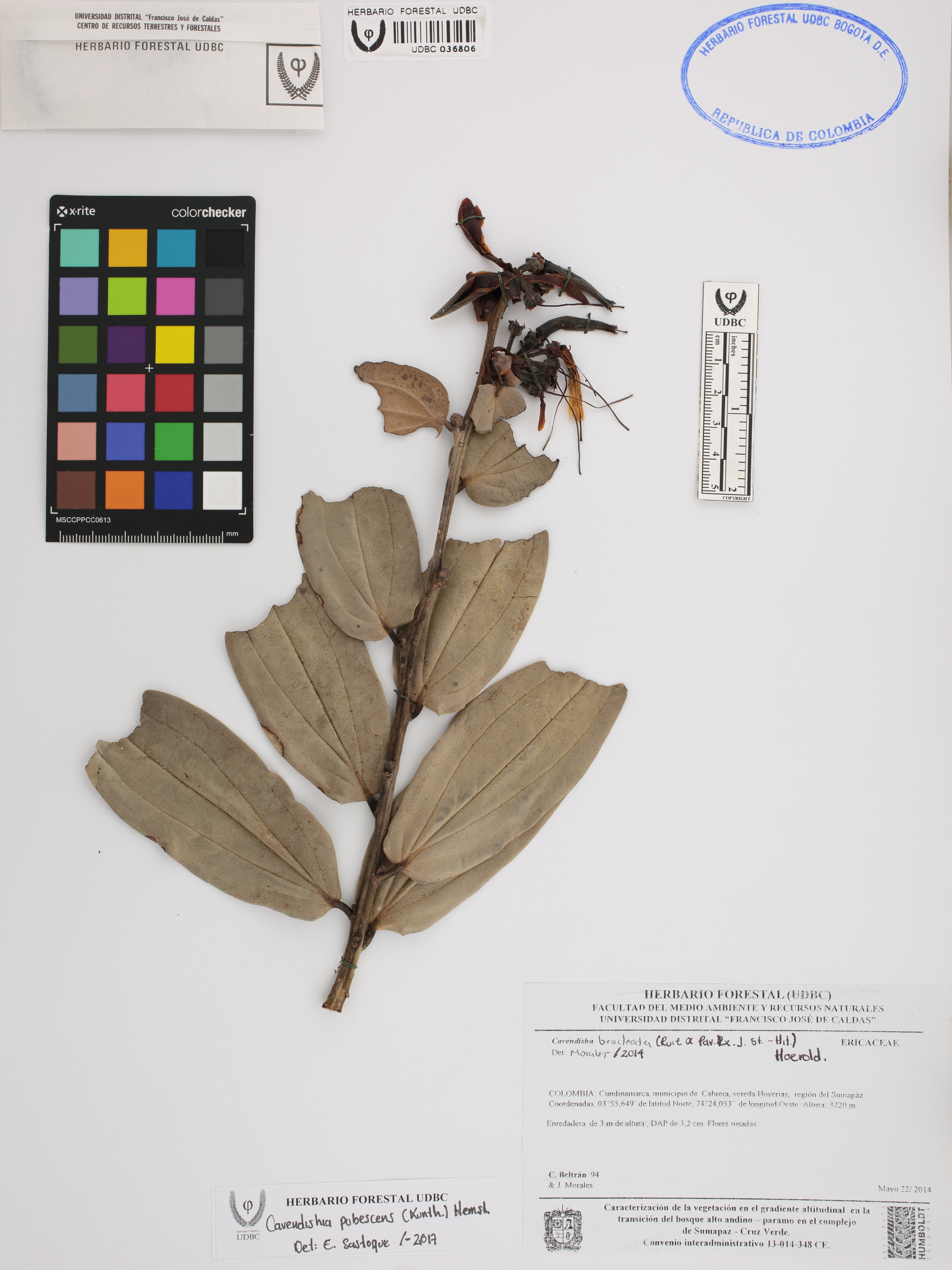 Fotografía del ejemplar Beltrán, L. 94, determinado como Cavendishia pubescens en el año 2017