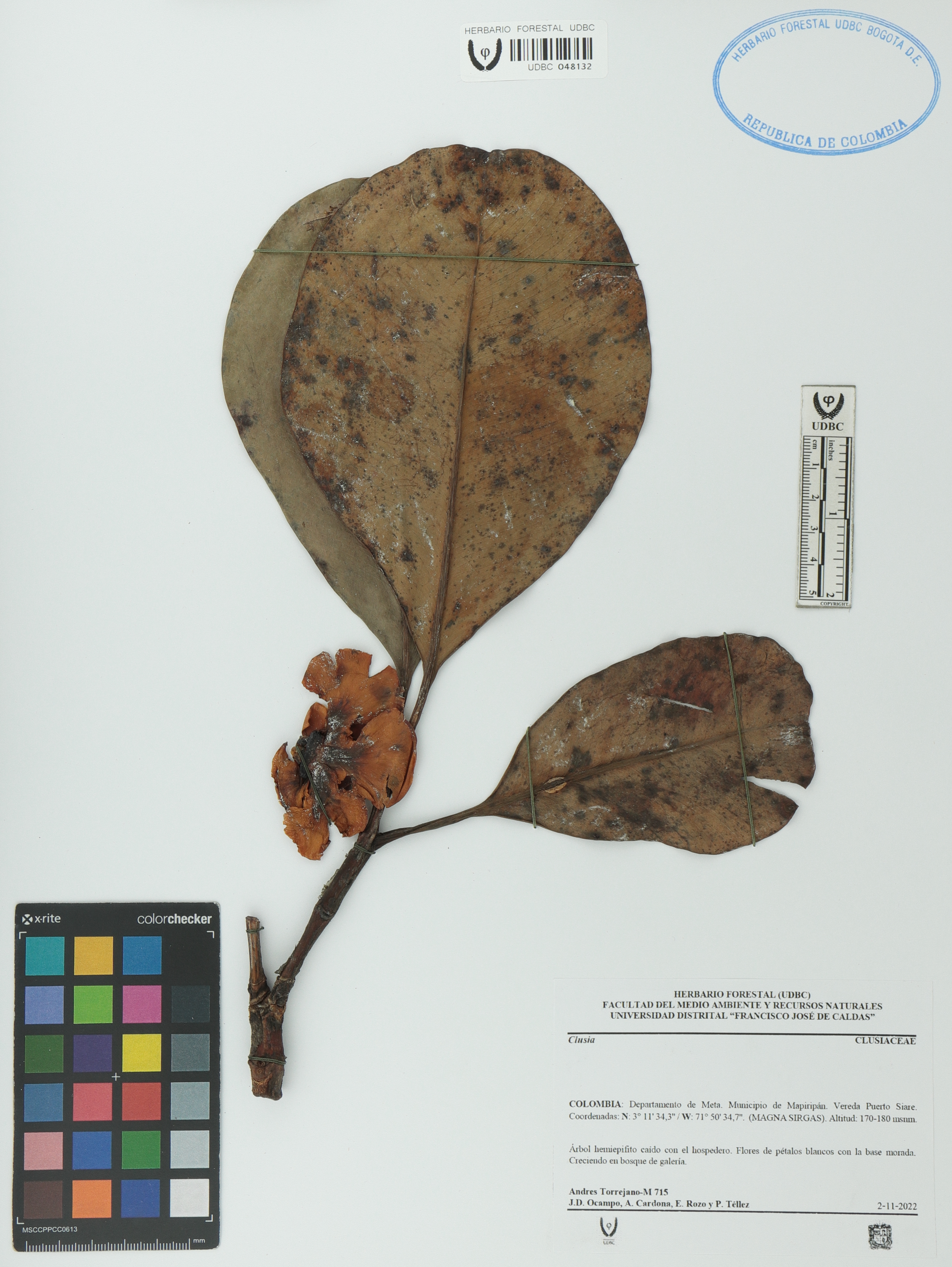 Fotografía del ejemplar Torrejano-M., Andrés 715, determinado como Clusia insignis en el año 2024