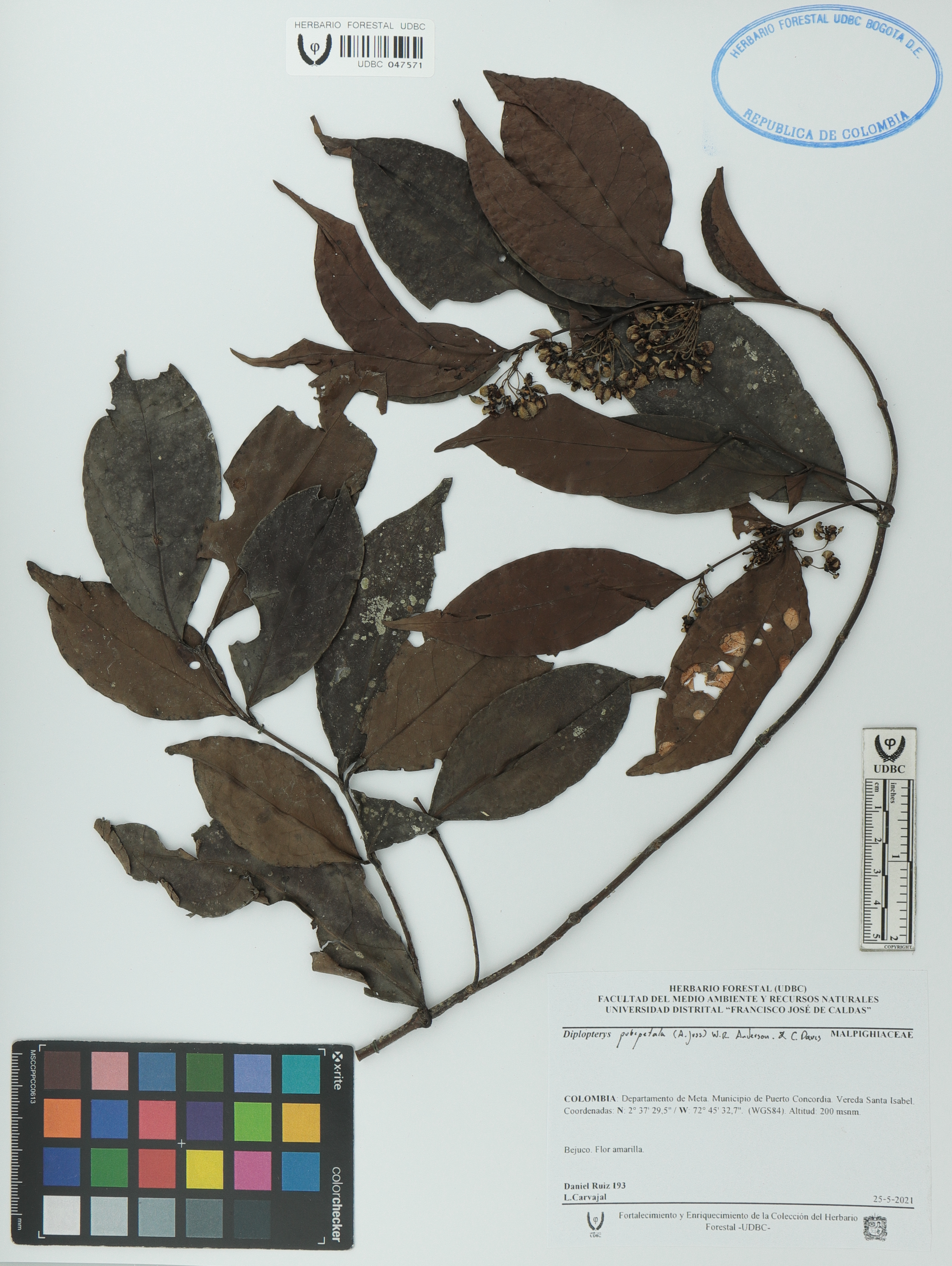 Fotografía del ejemplar Ruiz, Daniel 193, determinado como Diplopterys pubipetala