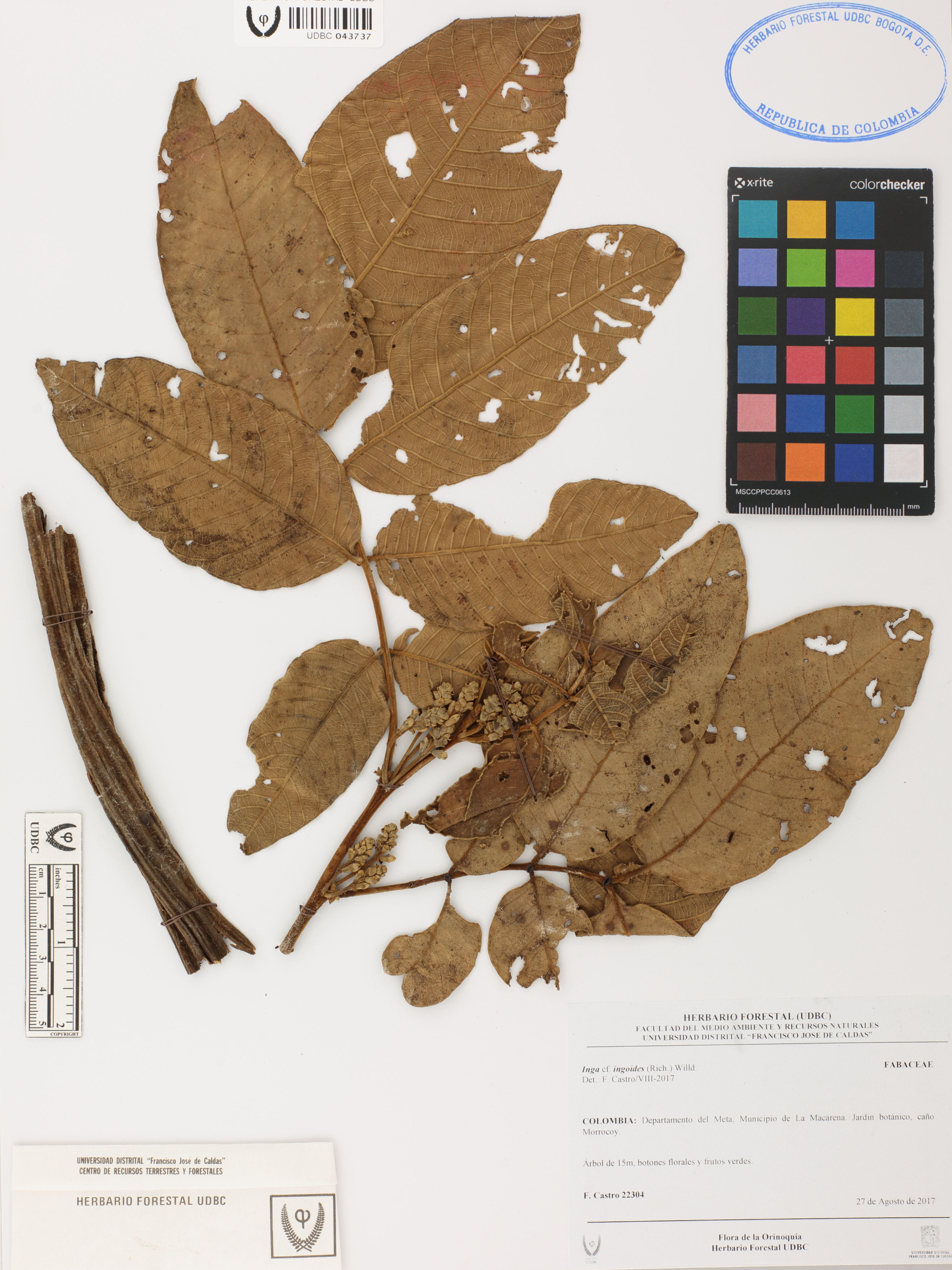 Fotografía del ejemplar Castro, F. 22304, determinado como Inga ingoides en el año 2017