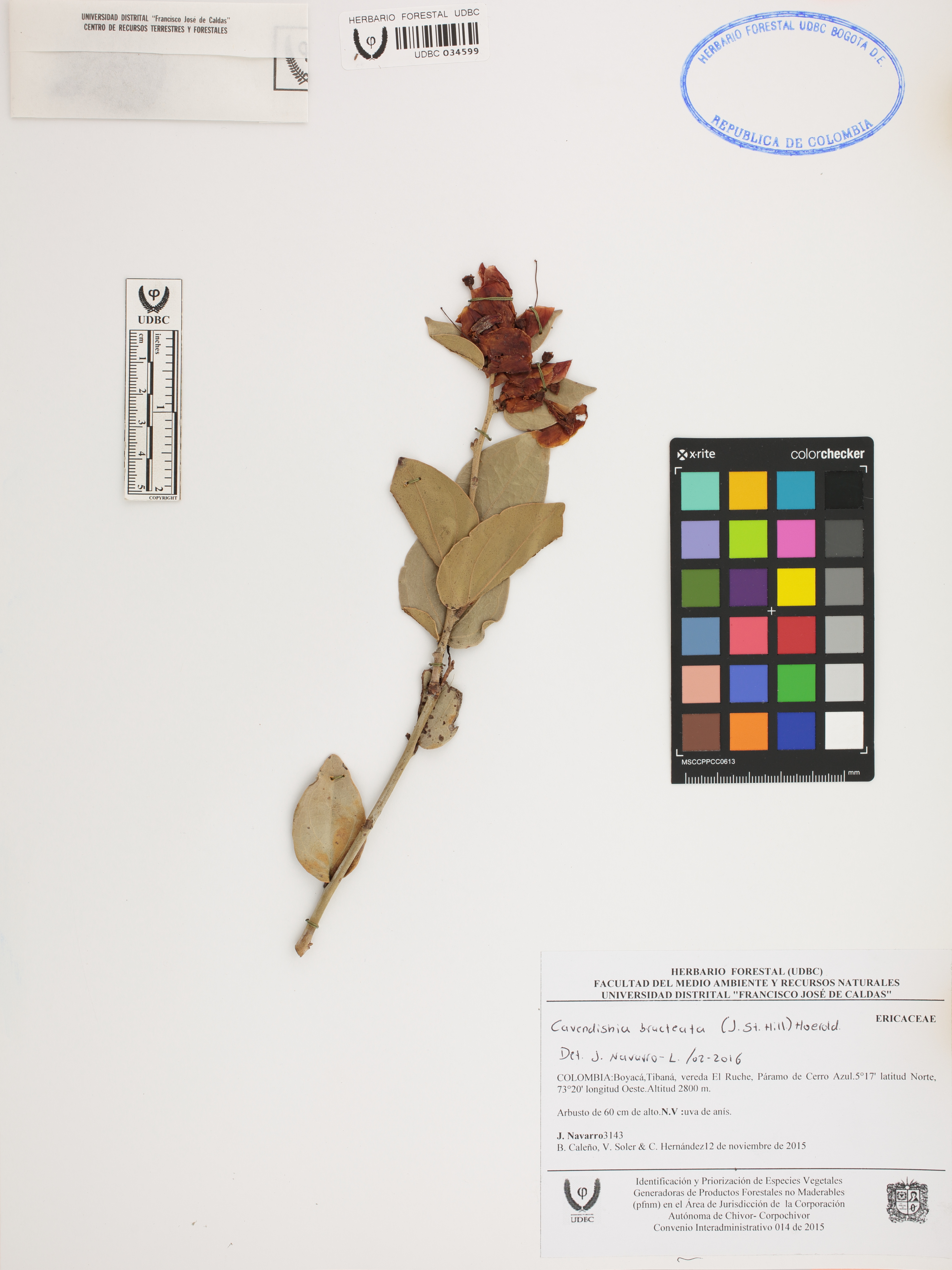 Fotografía del ejemplar Navarro, J. 3143, determinado como Cavendishia bracteata en el año 2016