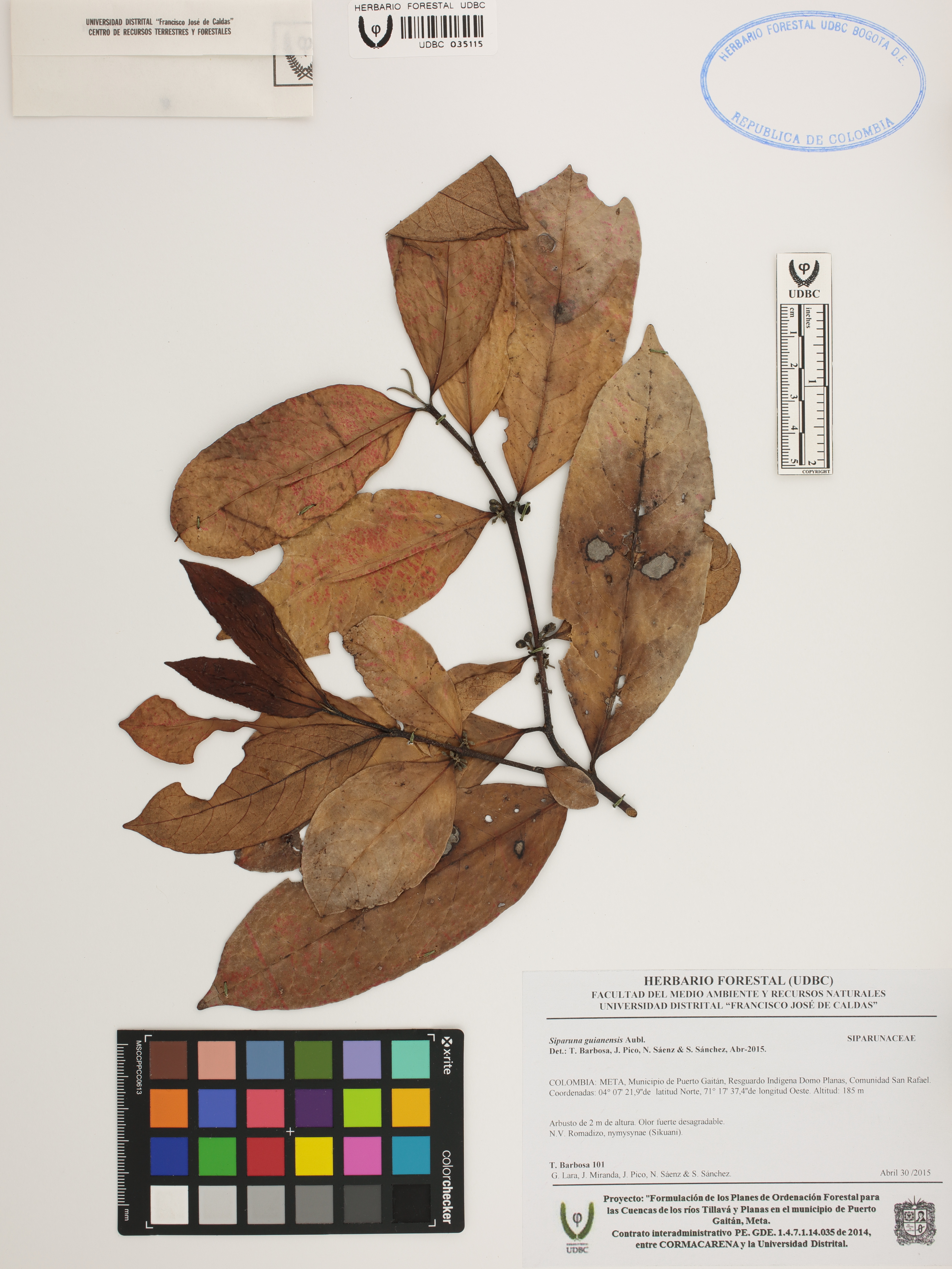 | dc.description | Fotografía del ejemplar Barbosa, T. 101, determinado como Siparuna guianensis en el año 2015 | |