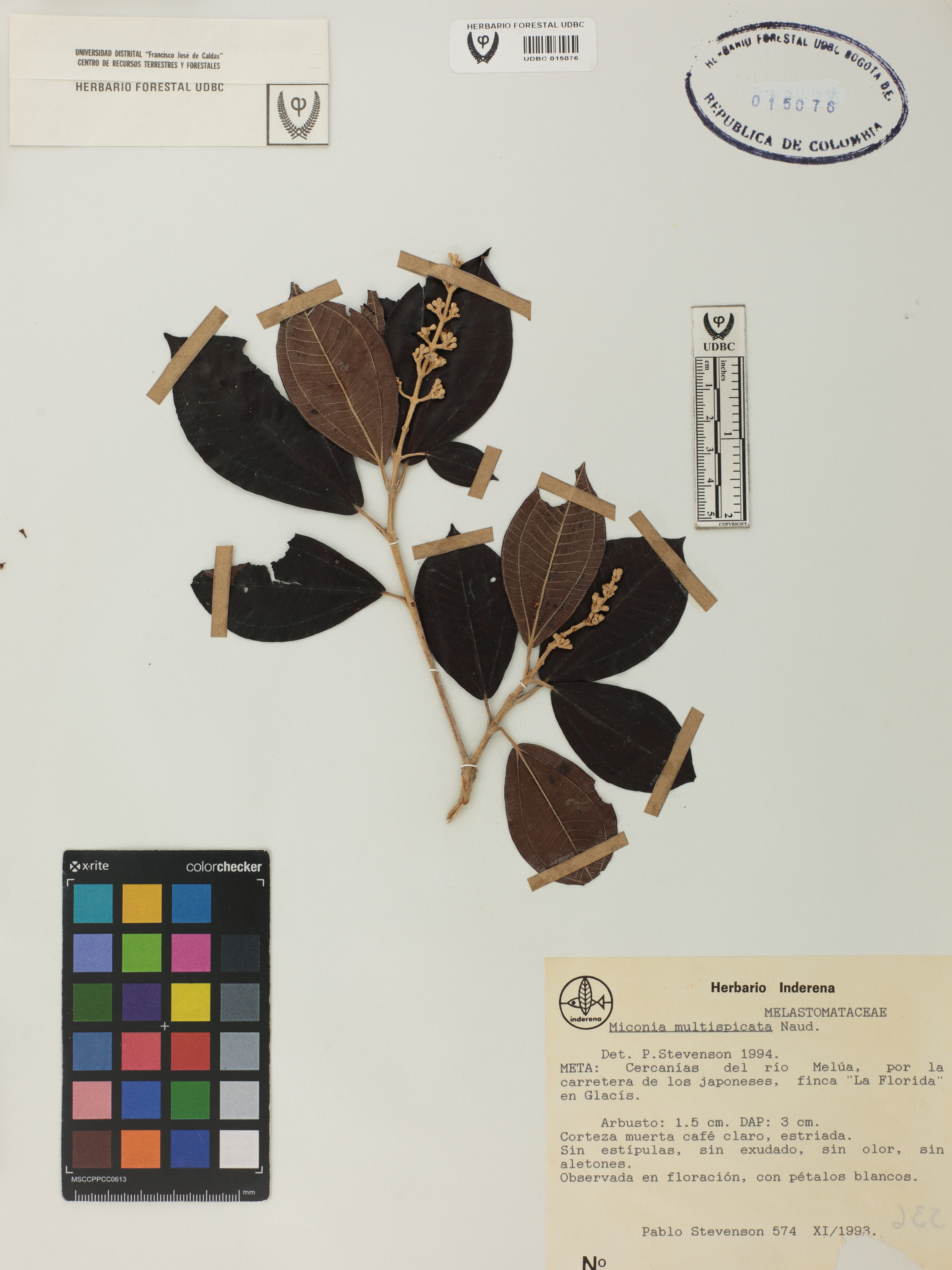 Fotografía del ejemplar Stevenson, P. 574, determinado como Miconia multispicata en el año 1994