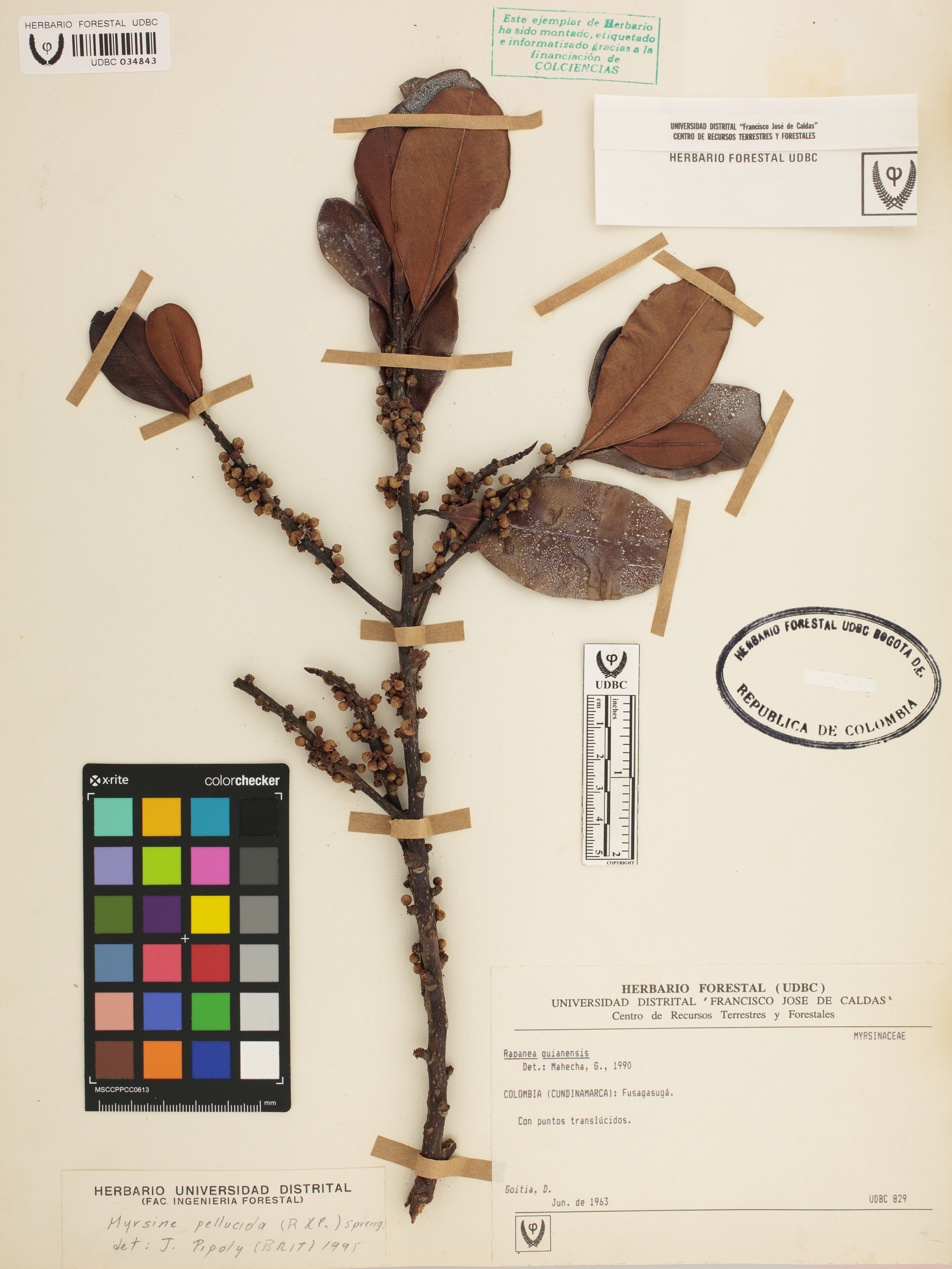 Fotografía del ejemplar Goitia, D., determinado como Myrsine pellucida en el año 1995