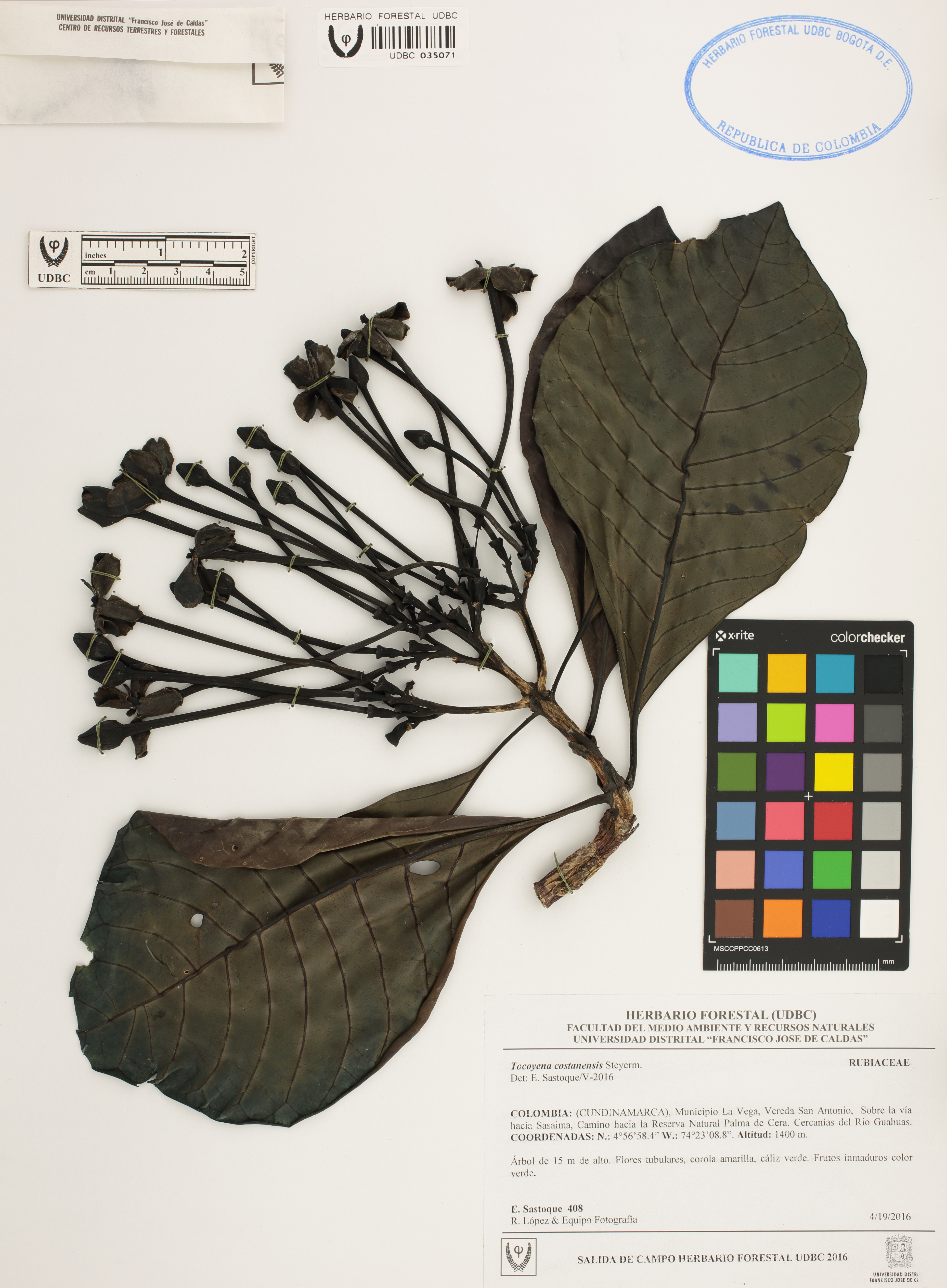 Fotografía del ejemplar Sastoque, E. 408, determinado como Tocoyena costanensis en el año 2016