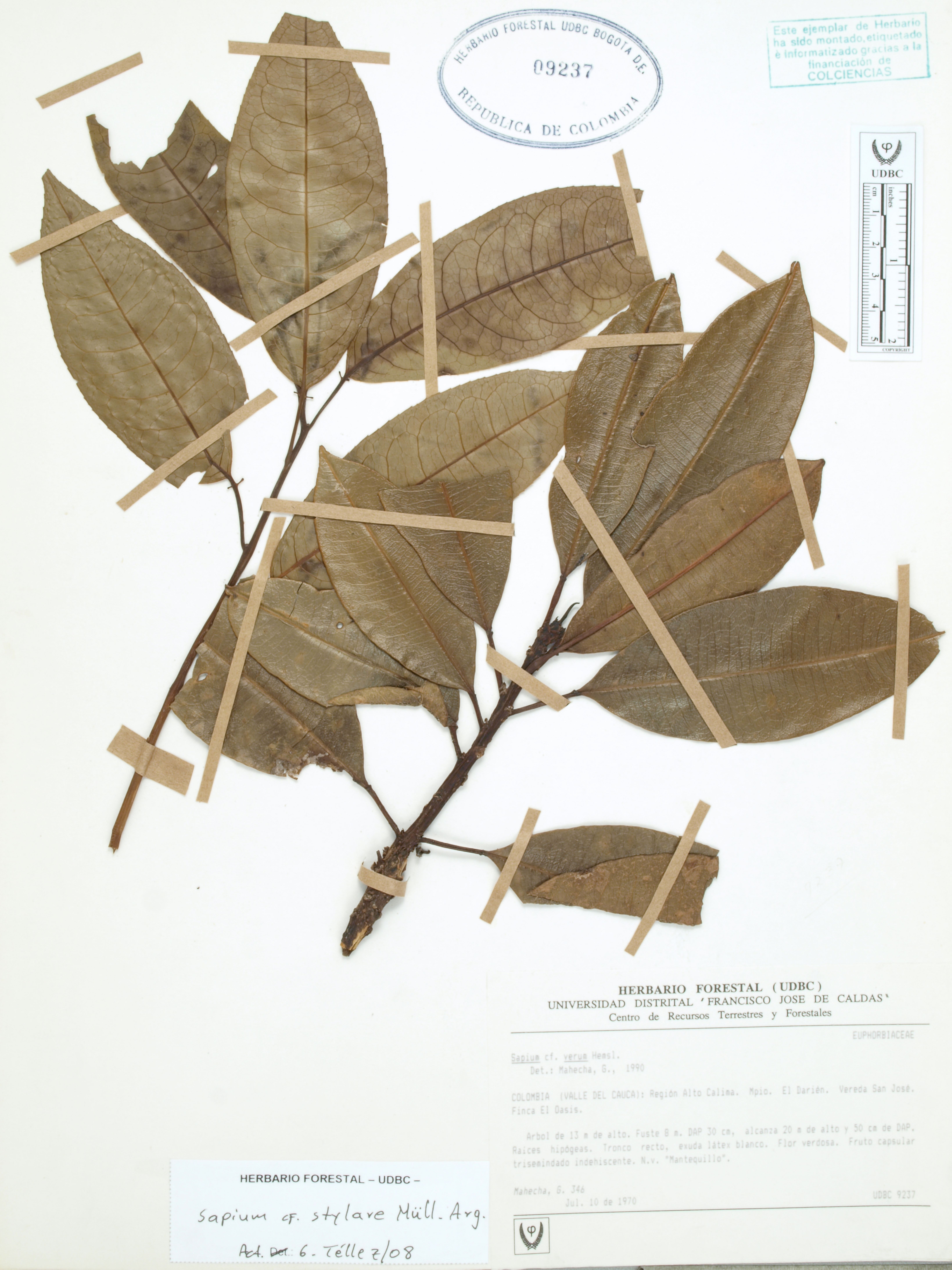 | dc.description | Fotografía del ejemplar Mahecha, G. 346, determinado como Sapium stylare en el año 2008 | |