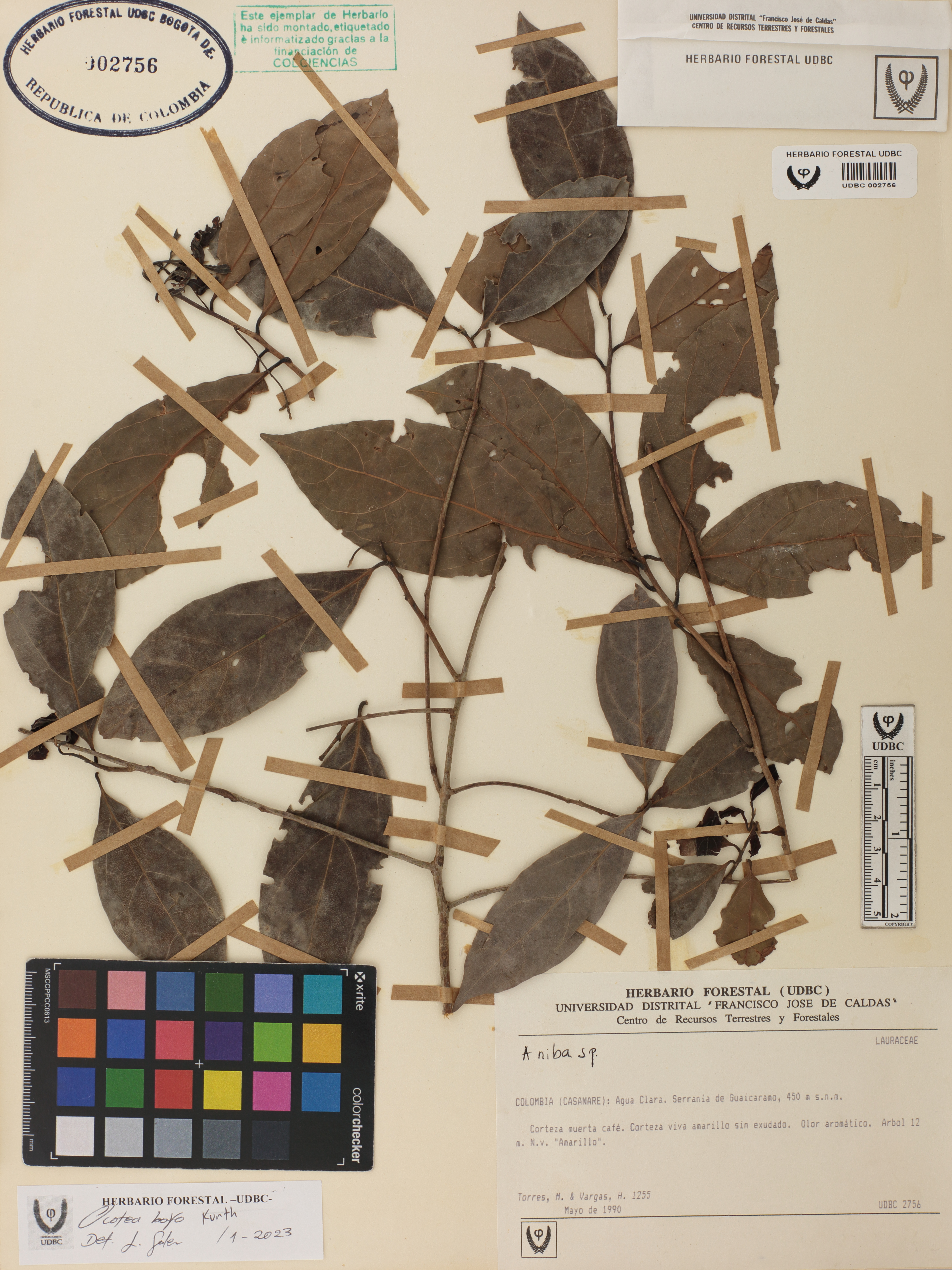 Fotografía del ejemplar Torres, M. 1255, determinado como Ocotea bofo en el año 2023