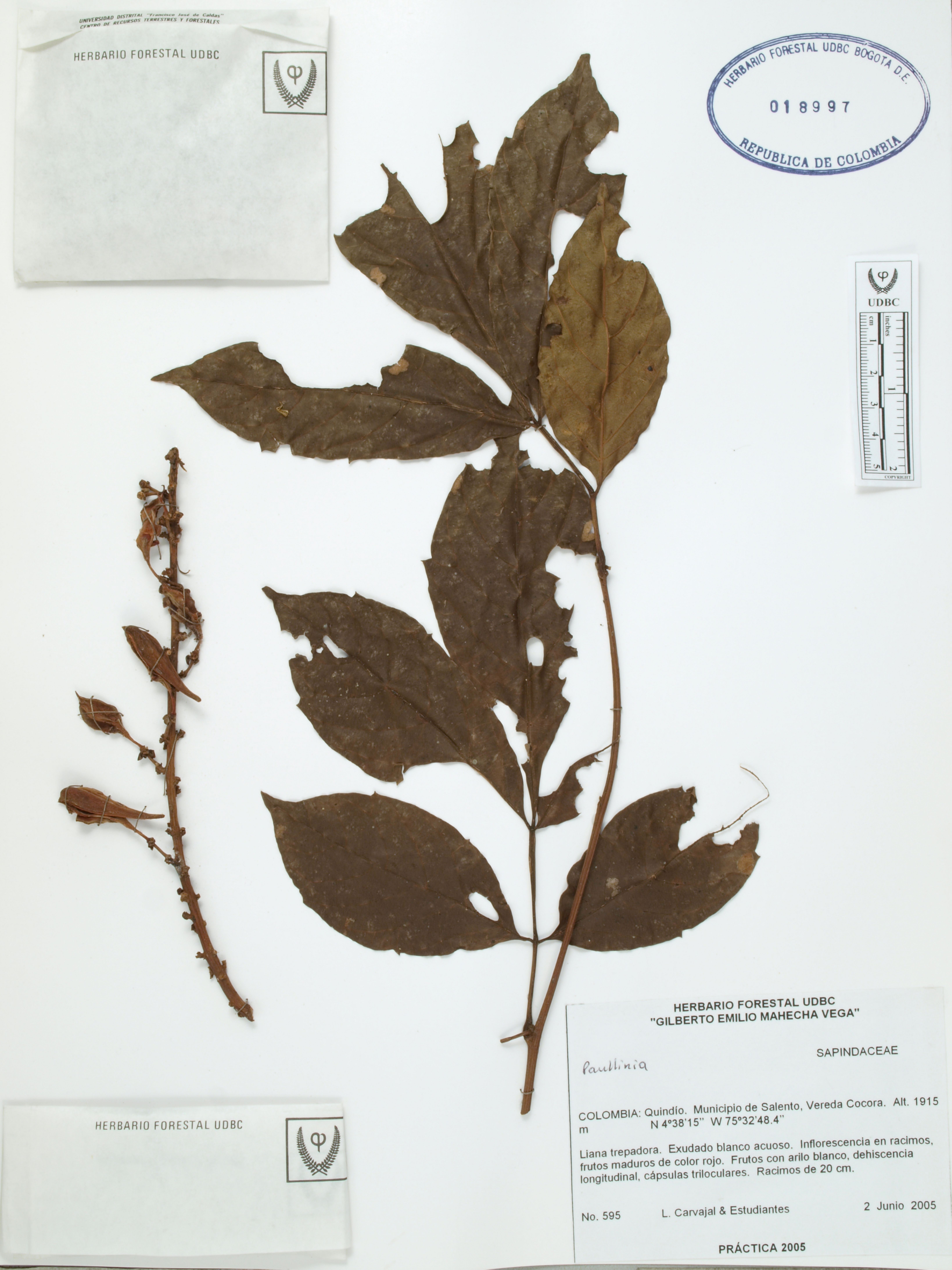 Fotografía del ejemplar Carvajal, L. 595, determinado como Paullinia sp.