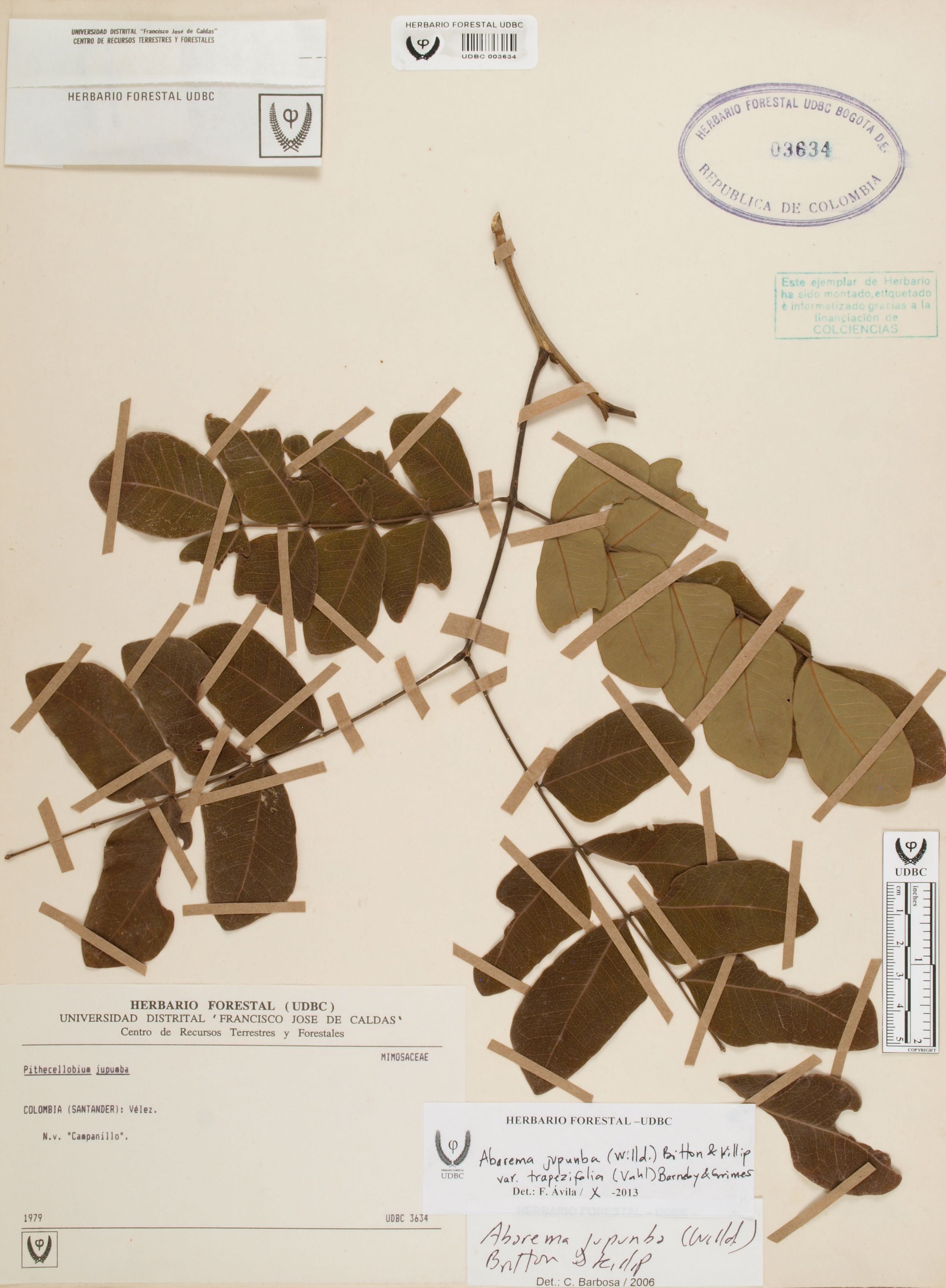 Fotografía del ejemplar SD, determinado como Abarema jupunba var. trapezifolia en el año 2013