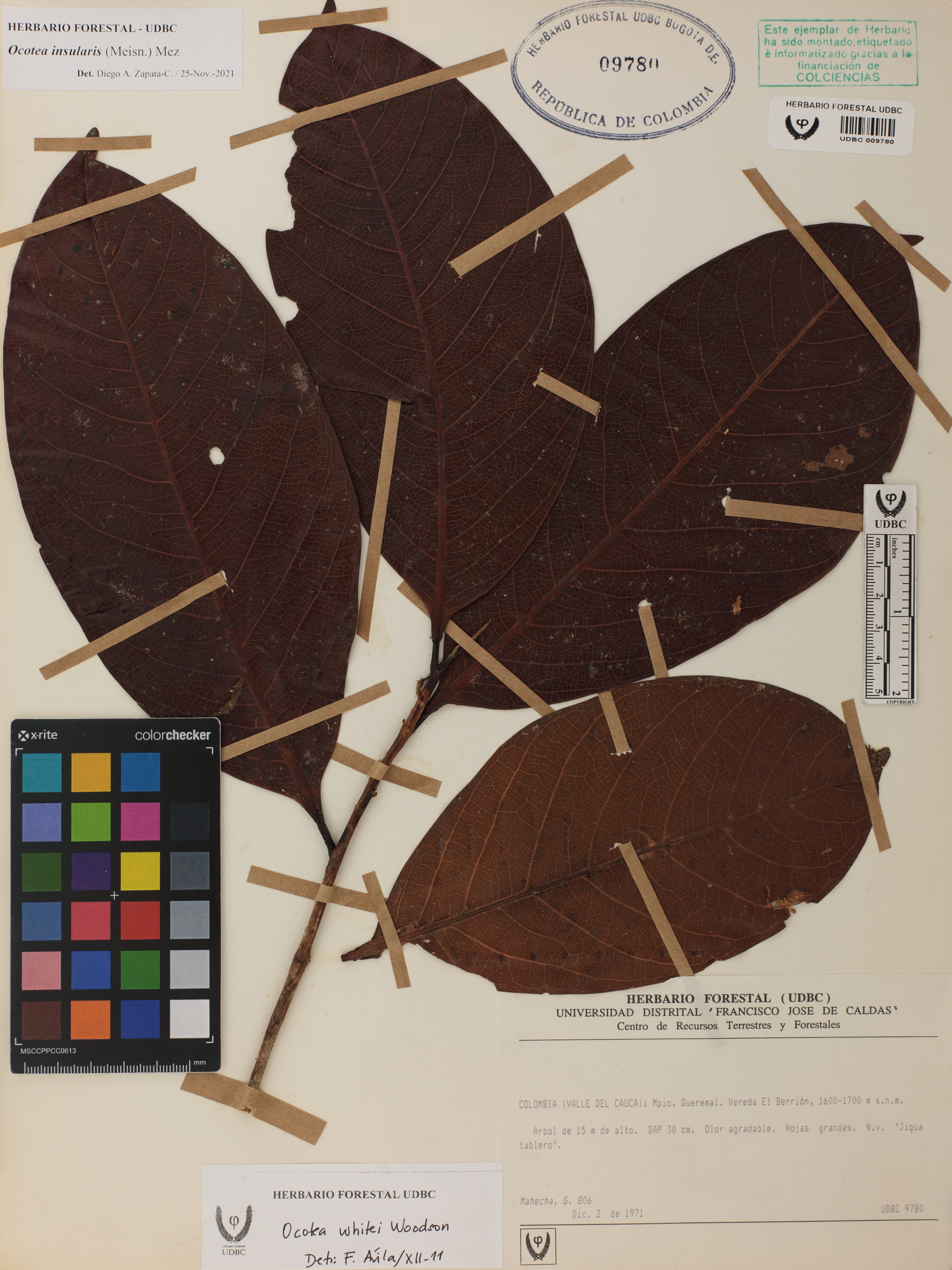 Fotografía del ejemplar Mahecha, G. 806, determinado como Ocotea javitensis en el año 2021