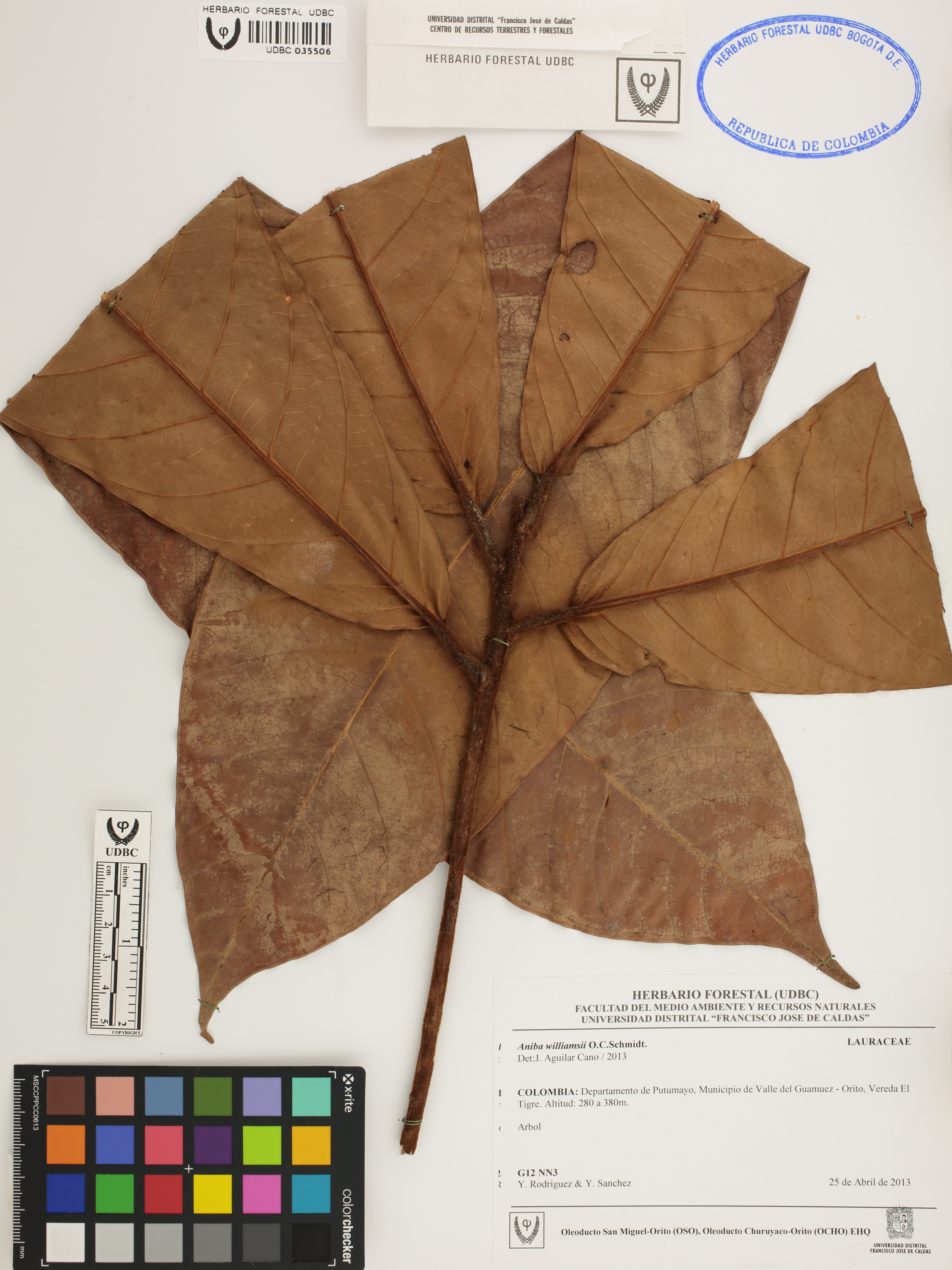 Fotografía del ejemplar Rodríguez, Y., determinado como Aniba williamsii en el año 2013