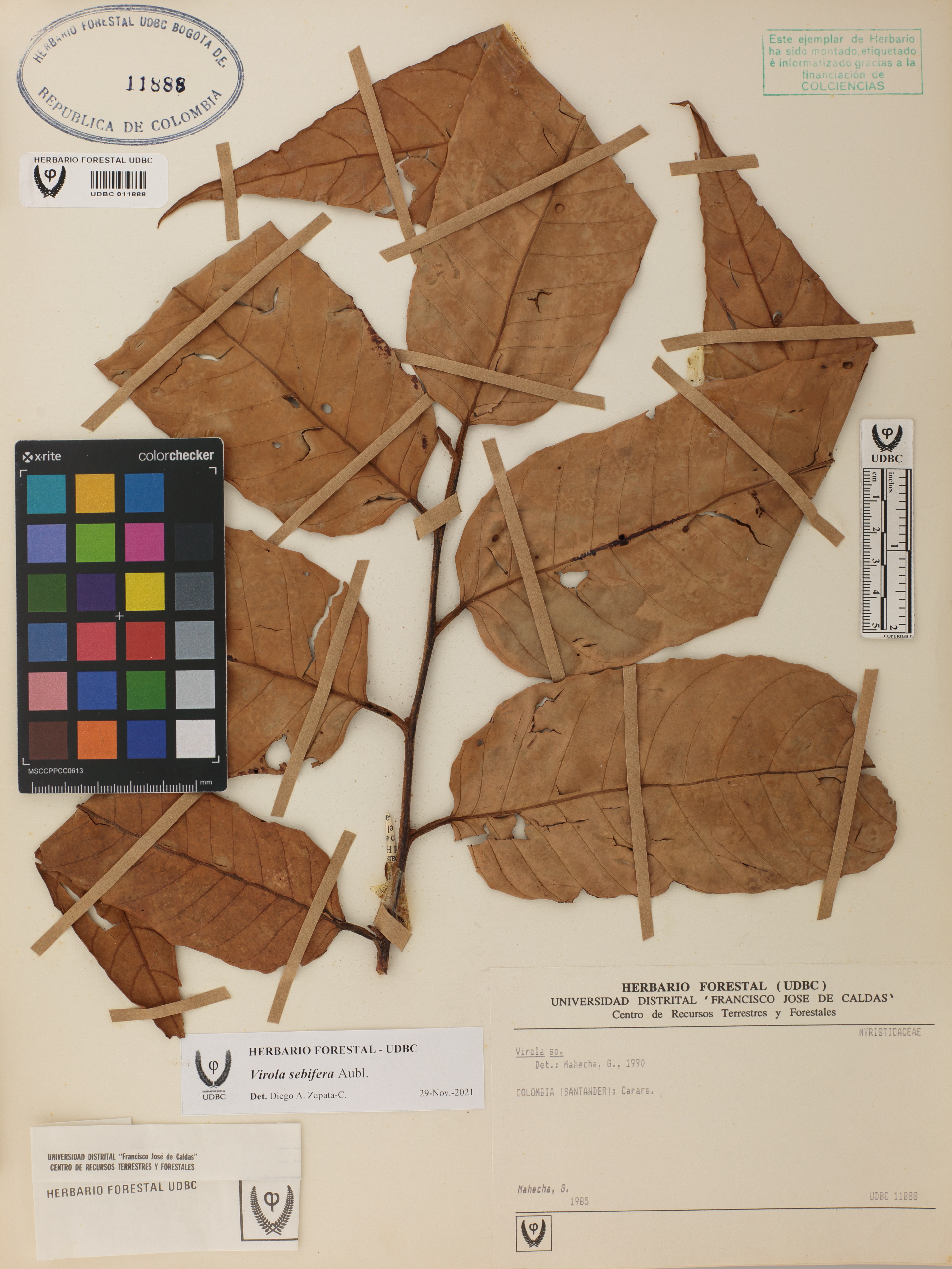 Fotografía del ejemplar Mahecha, G., determinado como Virola sebifera en el año 2021