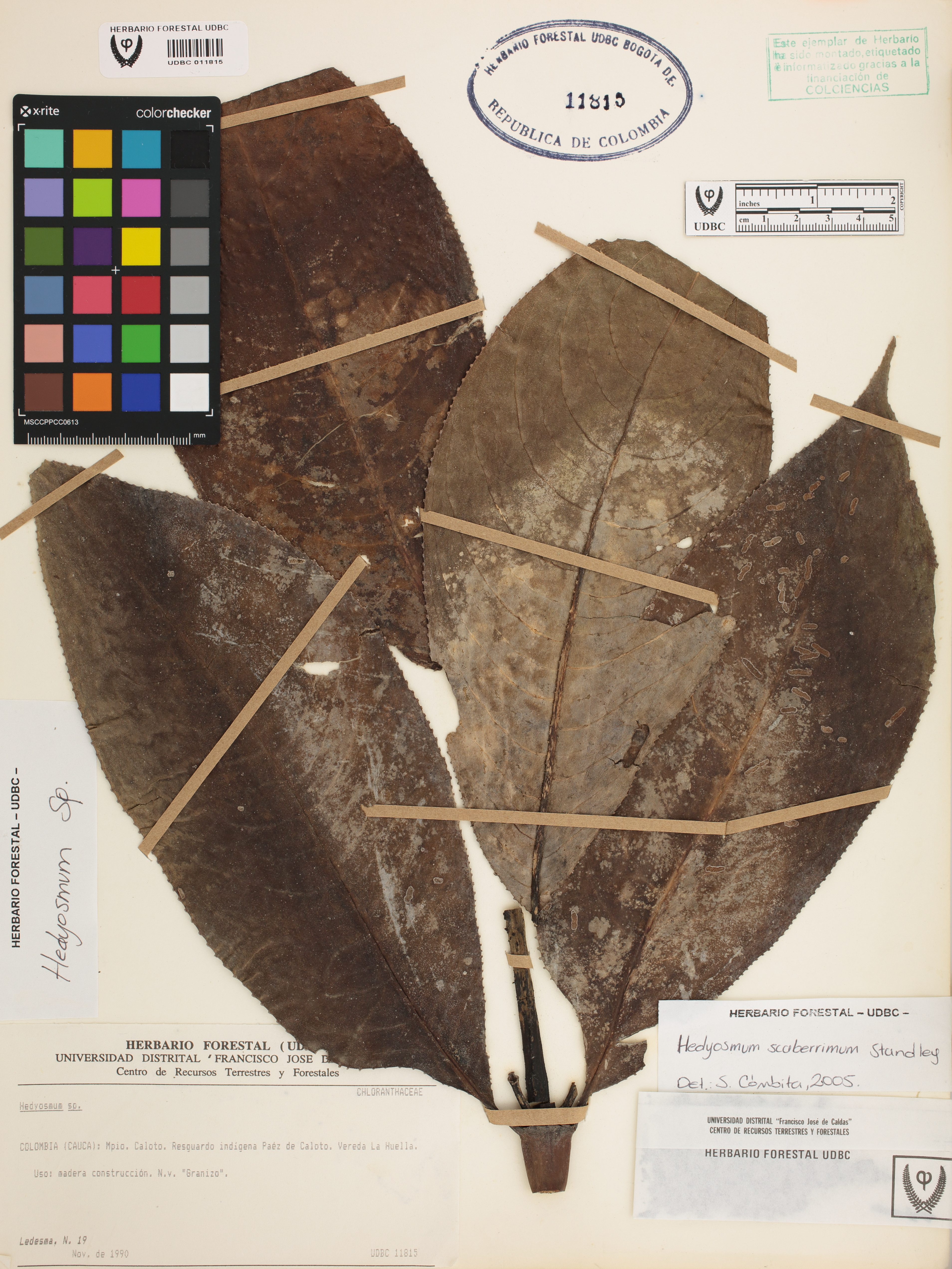 Fotografía del ejemplar Ledesma, N. 19, determinado como Hedyosmum scaberrimum en el año 2005
