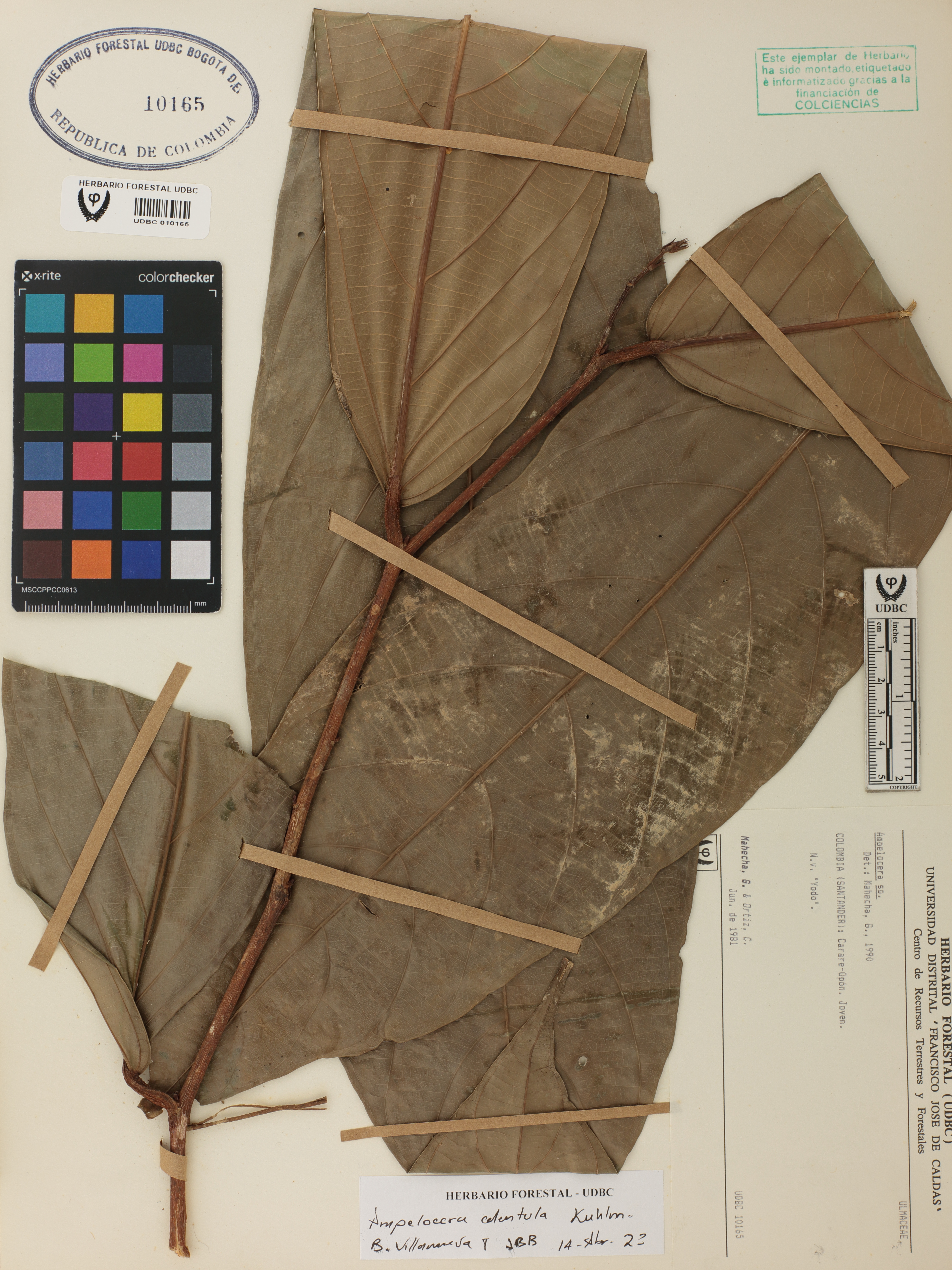 Fotografía del ejemplar Mahecha, G., determinado como Ampelocera edentula en el año 2023