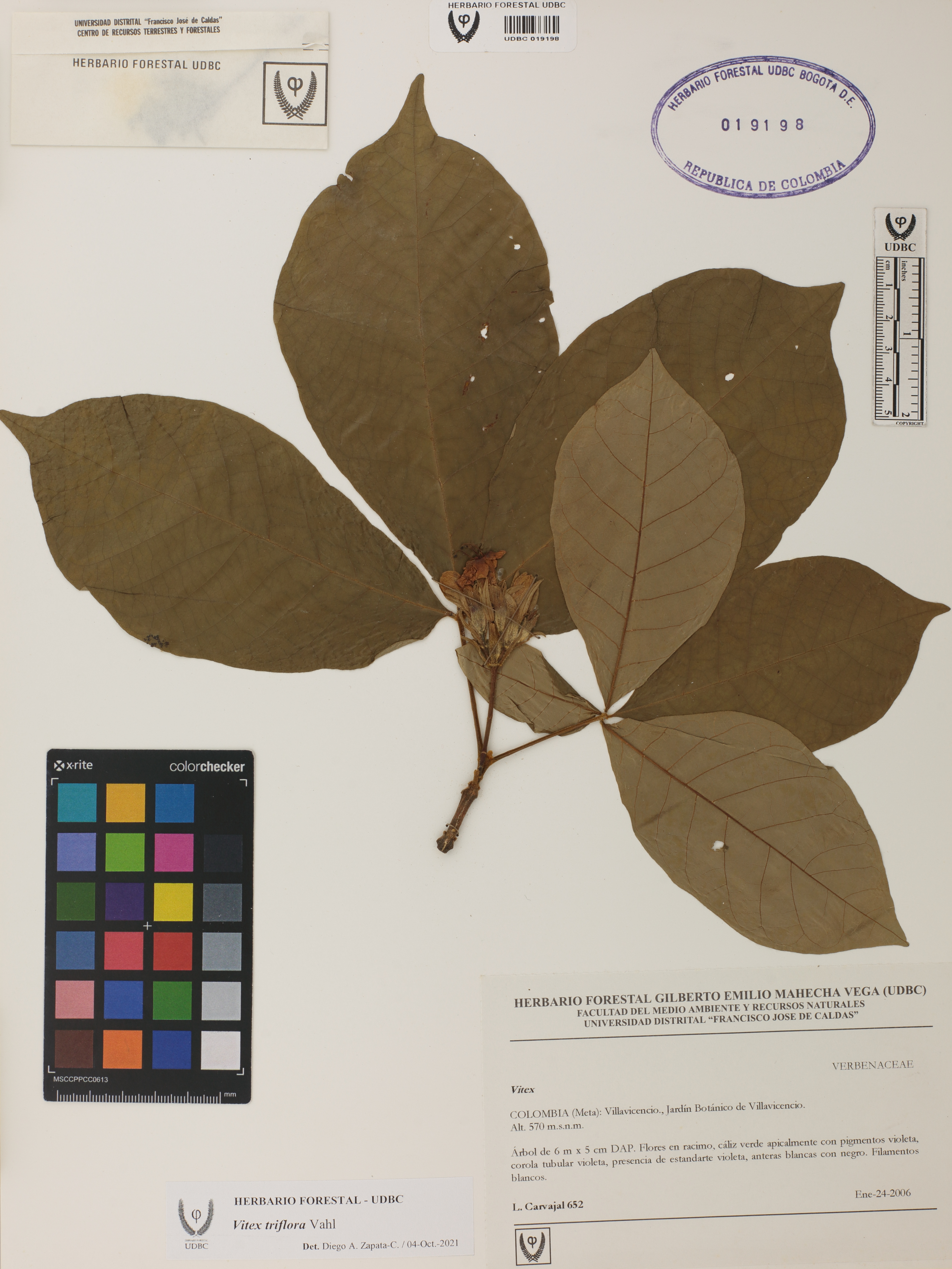 | dc.description | Fotografía del ejemplar Carvajal, L. 652, determinado como Vitex triflora en el año 2021 | |