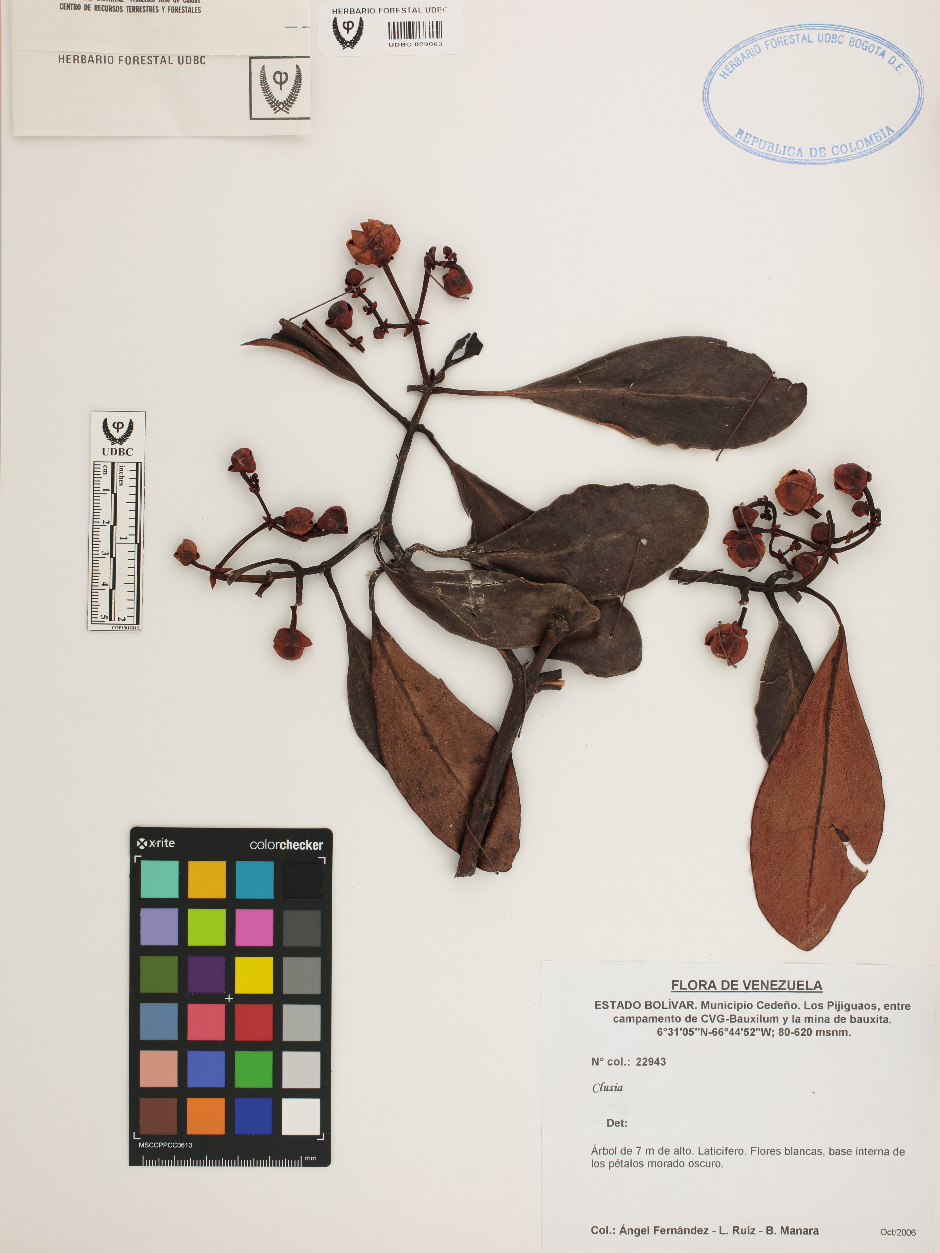 Fotografía del ejemplar Fernández, A. 22943, determinado como Clusia brachystyla en el año 2024