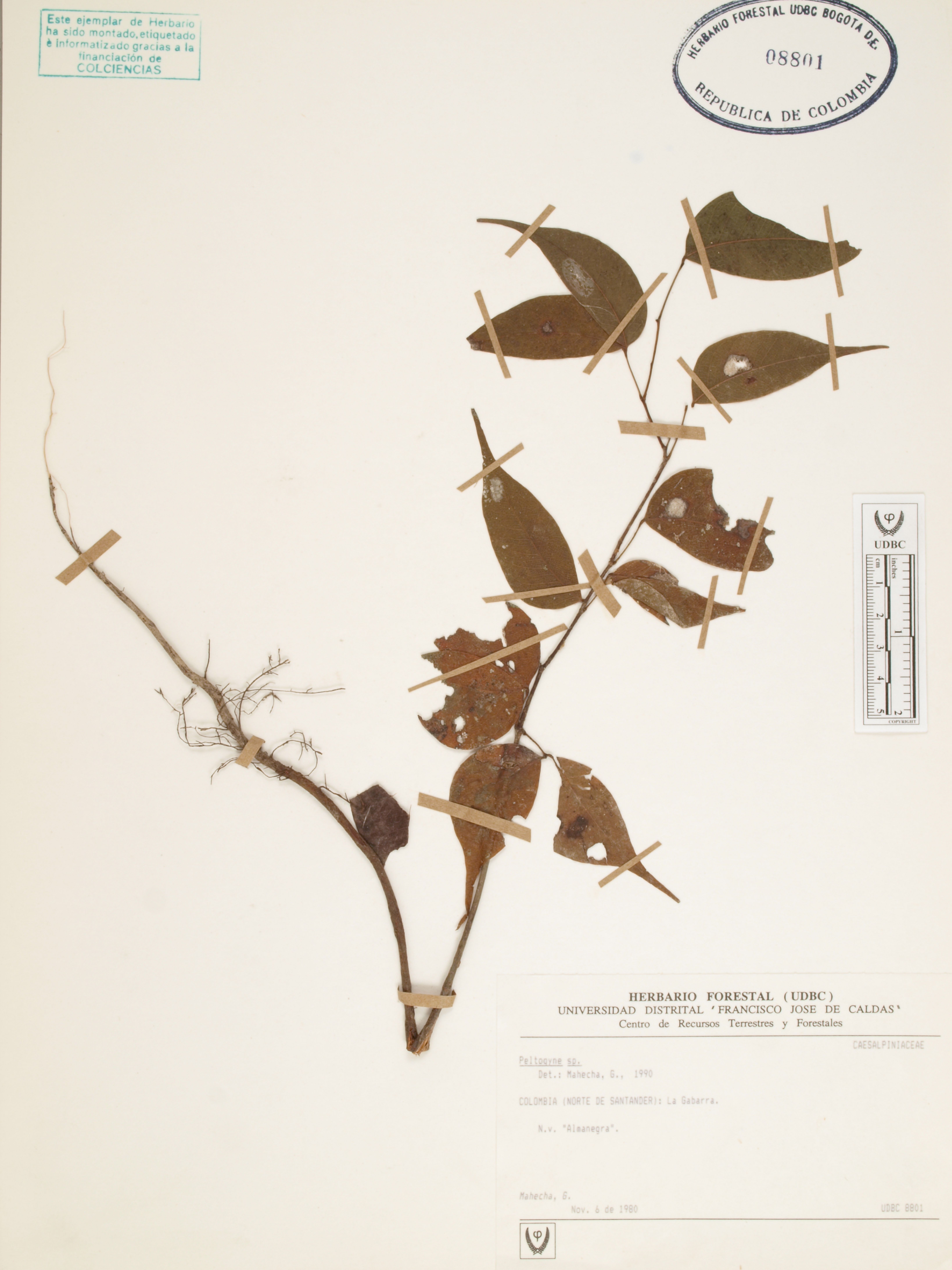 Fotografía del ejemplar Mahecha, G., determinado como Peltogyne sp.