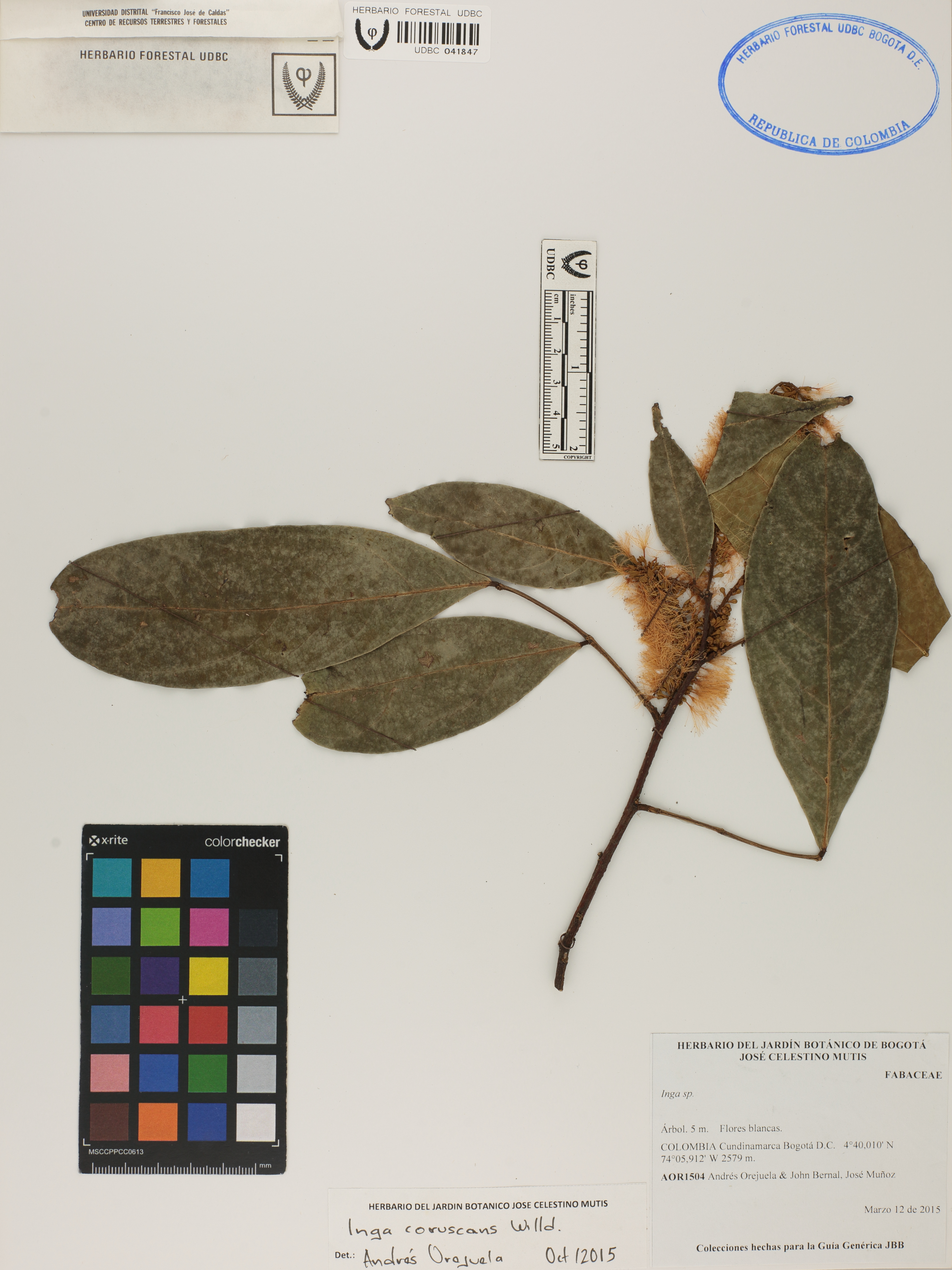 Fotografía del ejemplar Orejuela, A. 1504, determinado como Inga coruscans en el año 2015