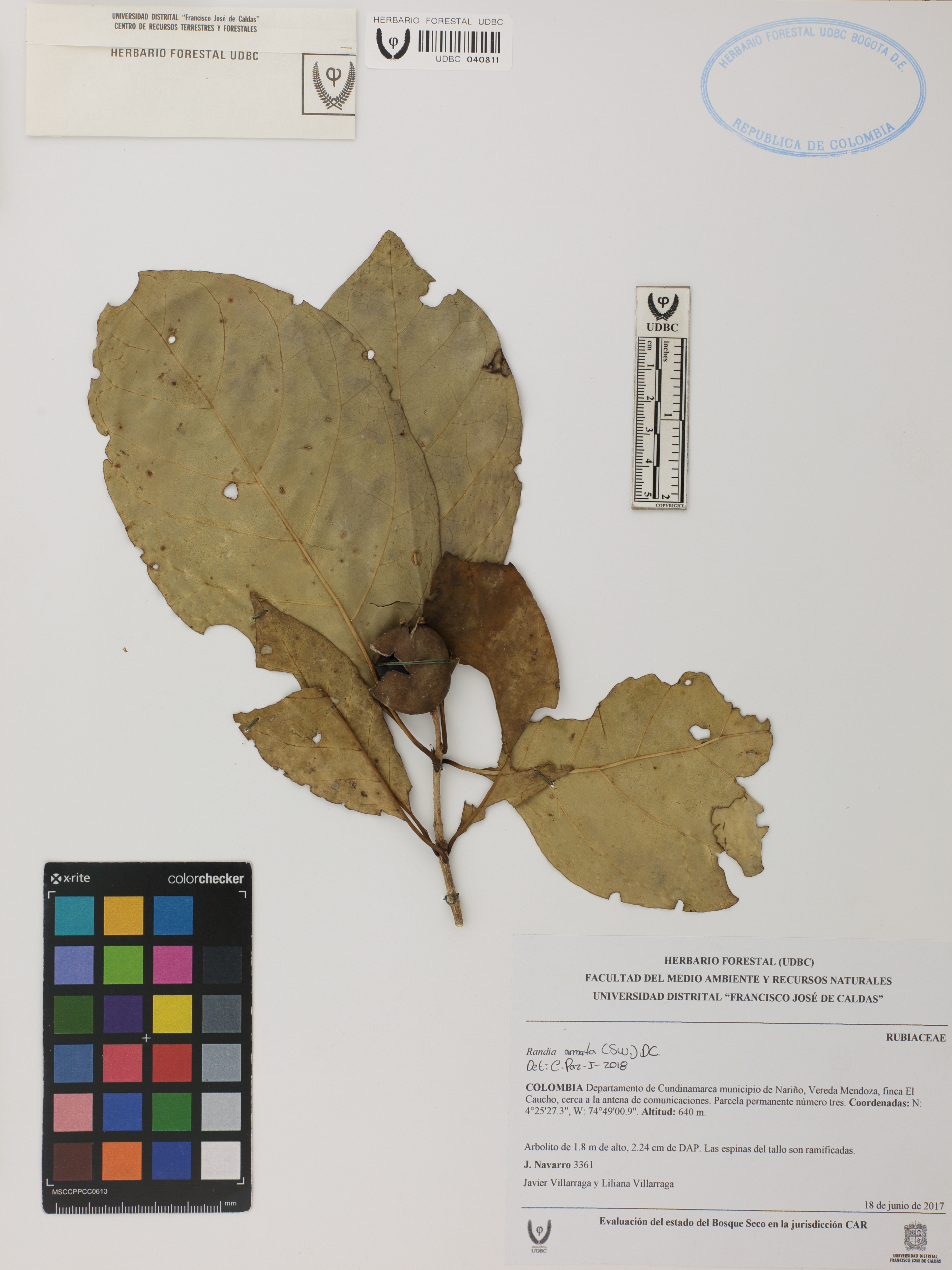 Fotografía del ejemplar Navarro, J. 3361, determinado como Randia armata en el año 2018
