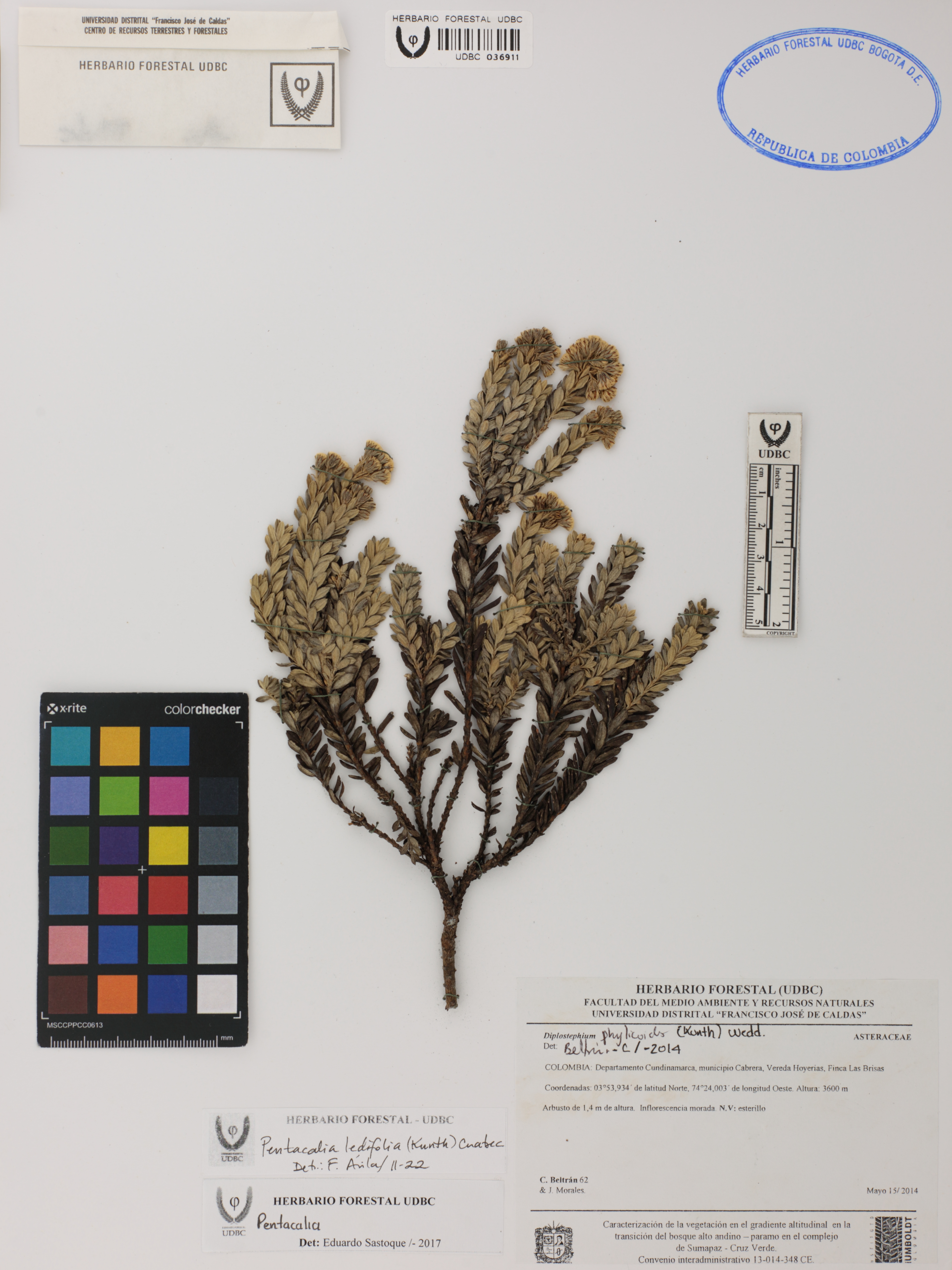 Fotografía del ejemplar Beltrán, C. 62, determinado como Pentacalia ledifolia en el año 2022