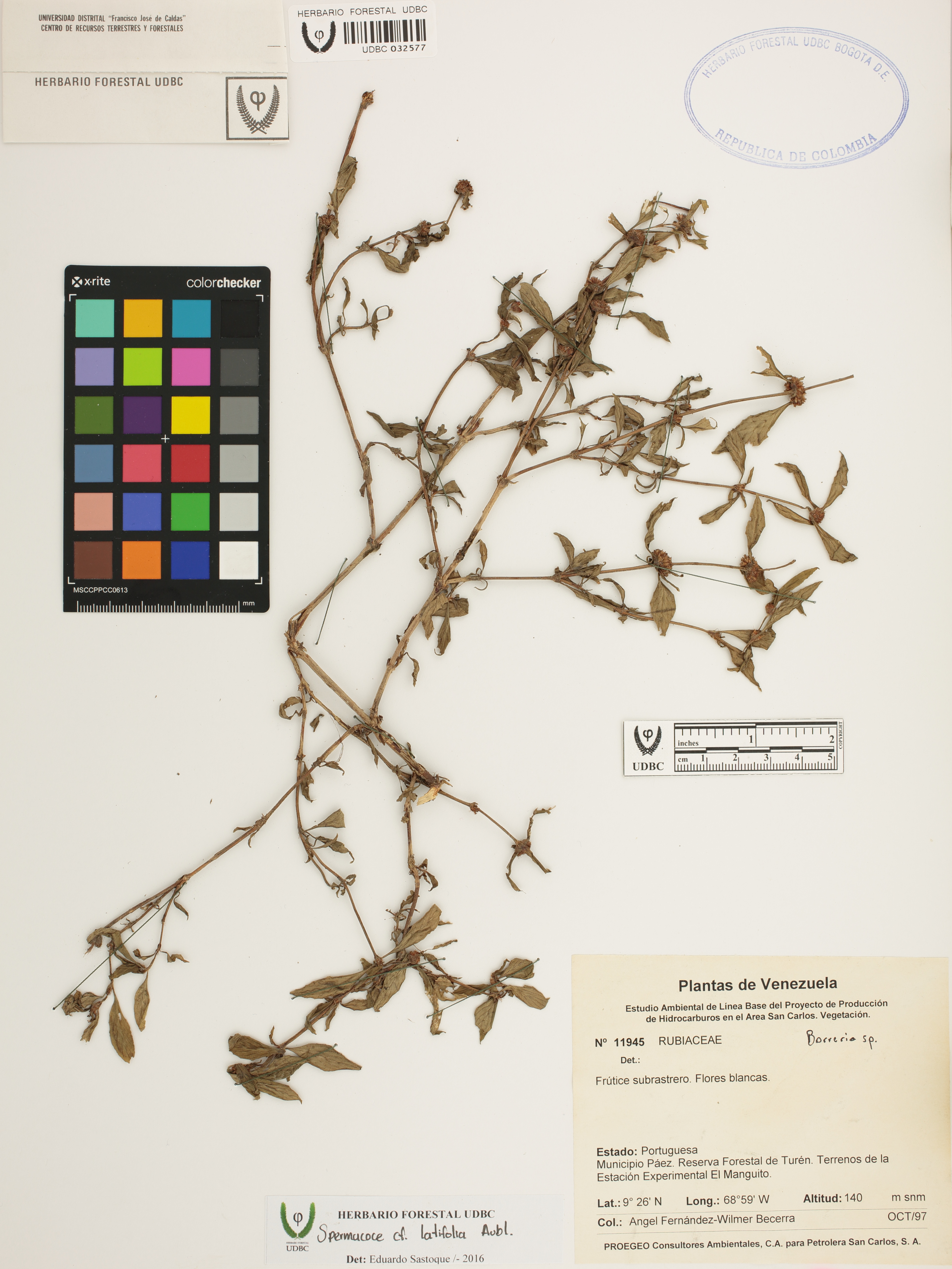 Fotografía del ejemplar Fernández, A. 11945, determinado como Spermacoce latifolia en el año 2016