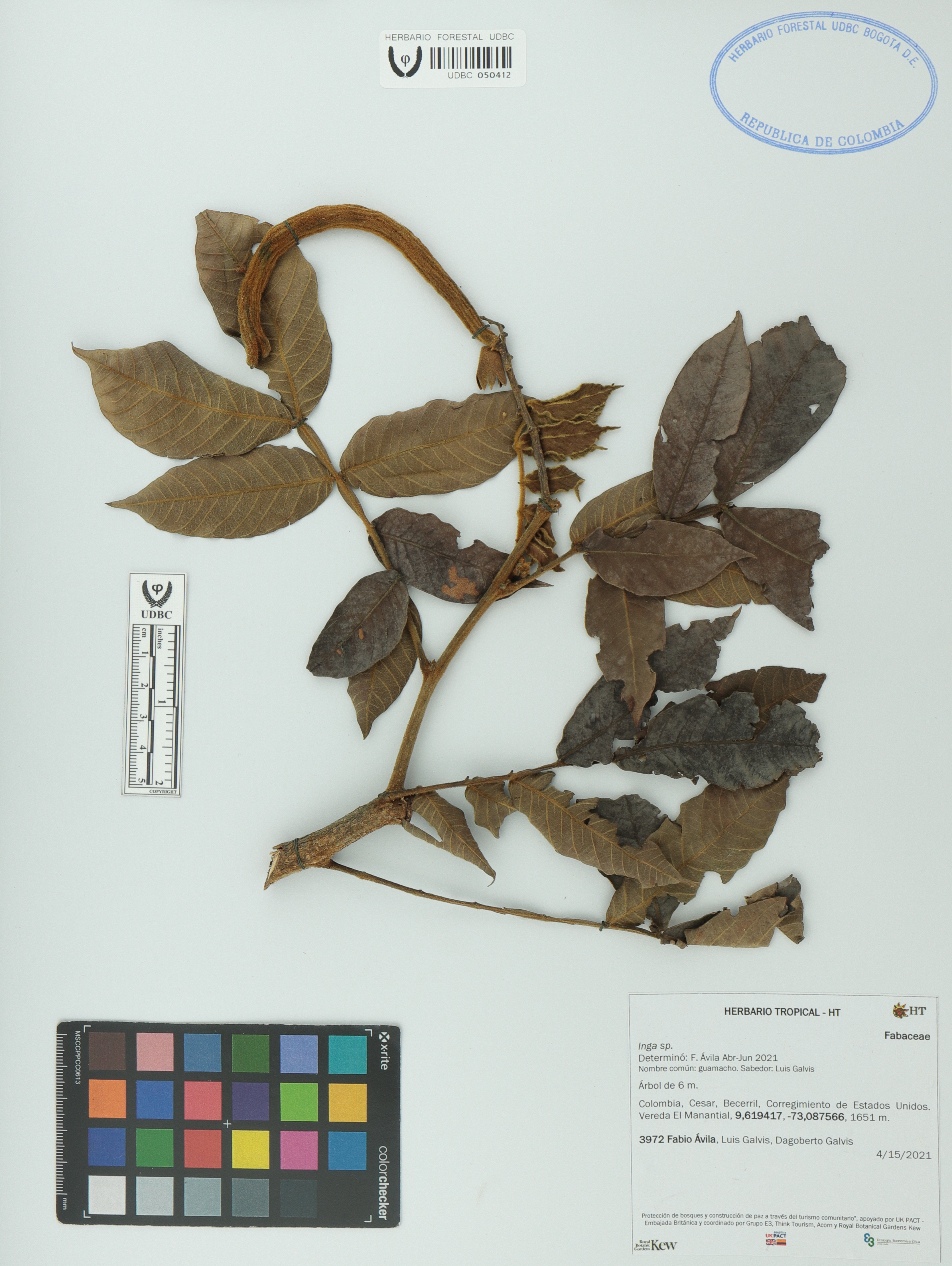 | dc.description | Fotografía del ejemplar Ávila, F. 3972, determinado como Inga sp. en el año 2021 | |