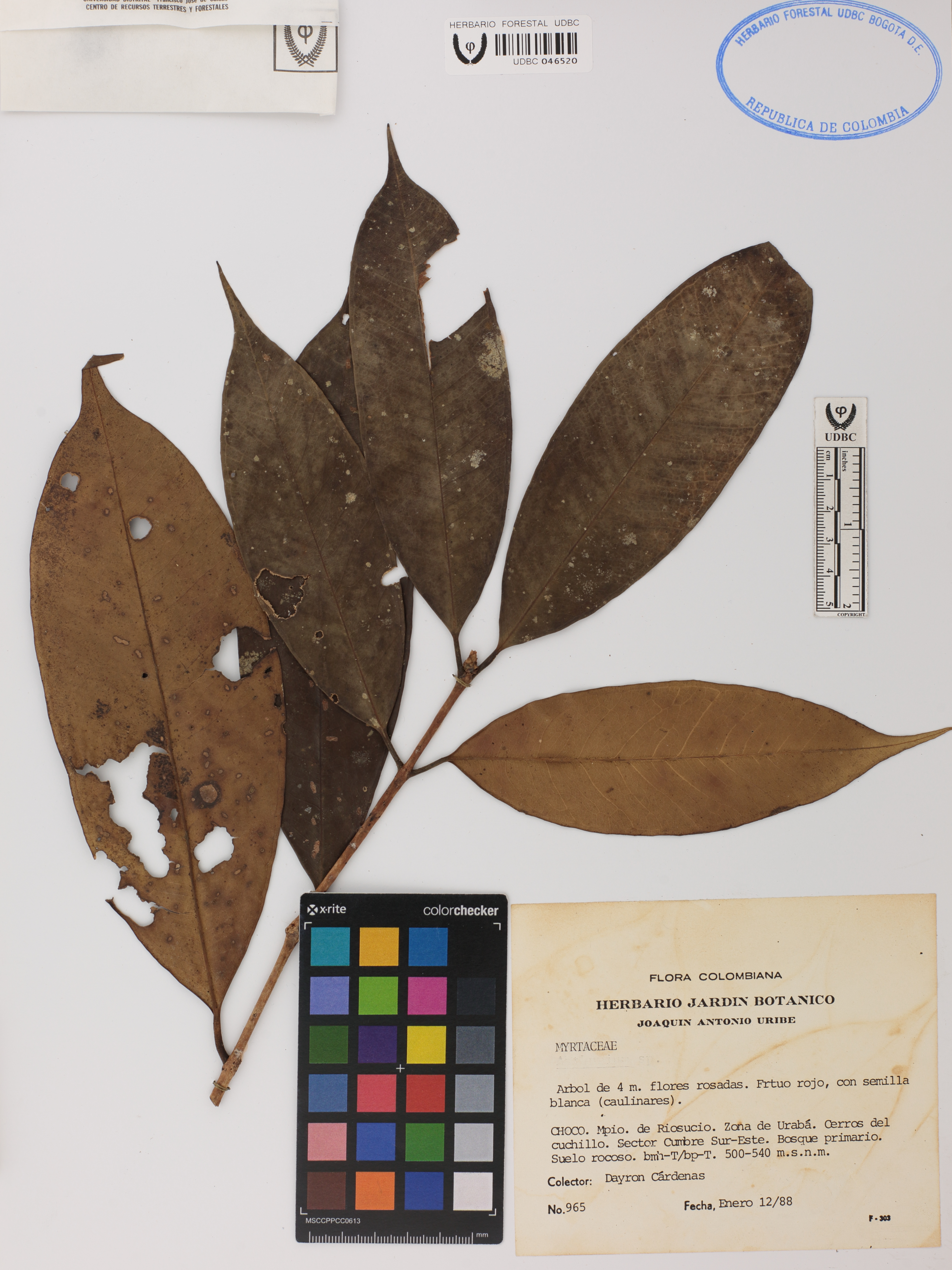 Fotografía del ejemplar Cárdenas, D. 965, determinado como Myrtaceae