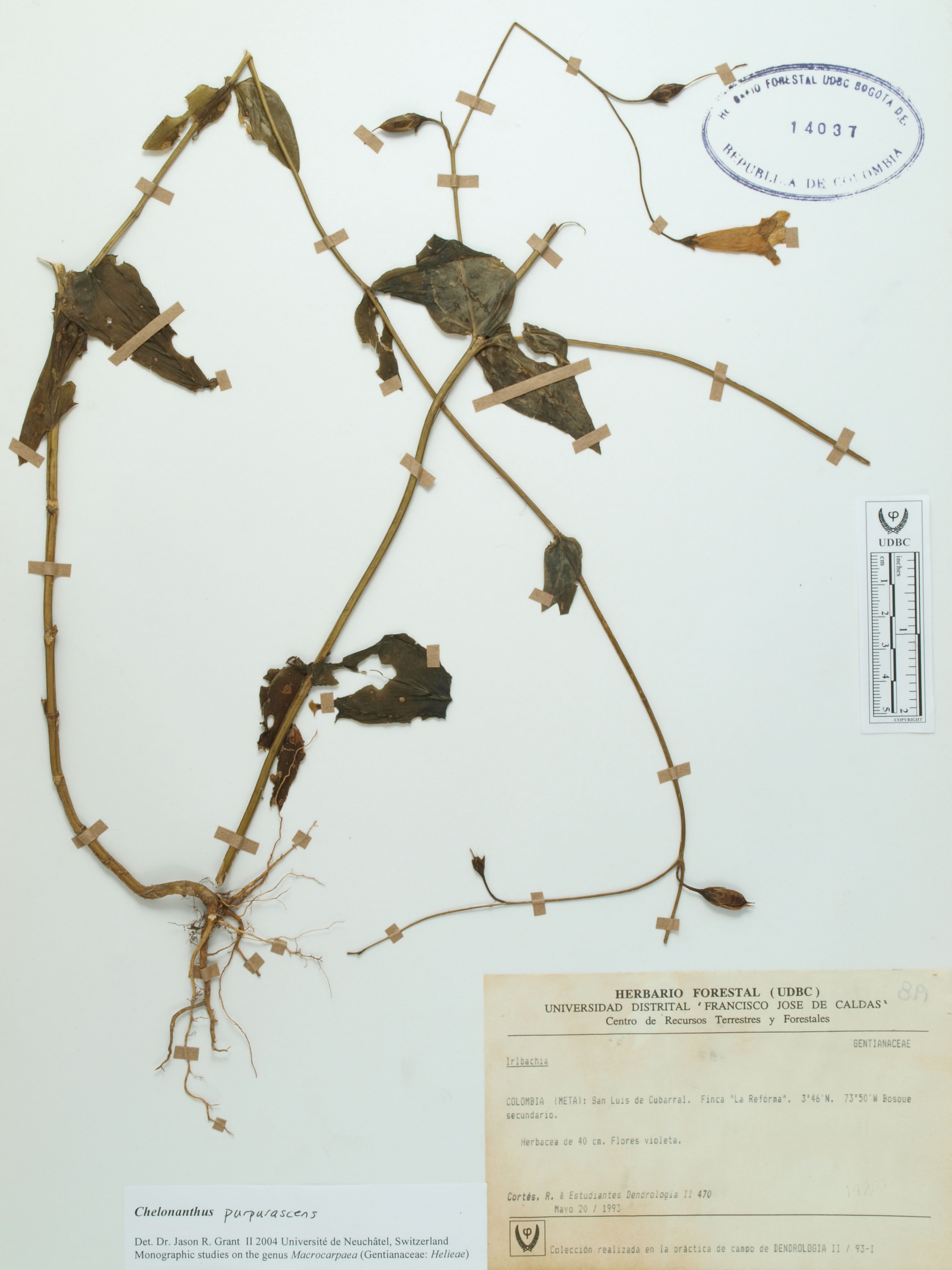 Fotografía del ejemplar Cortés, R. 470, determinado como Chelonanthus purpurascens en el año 2004