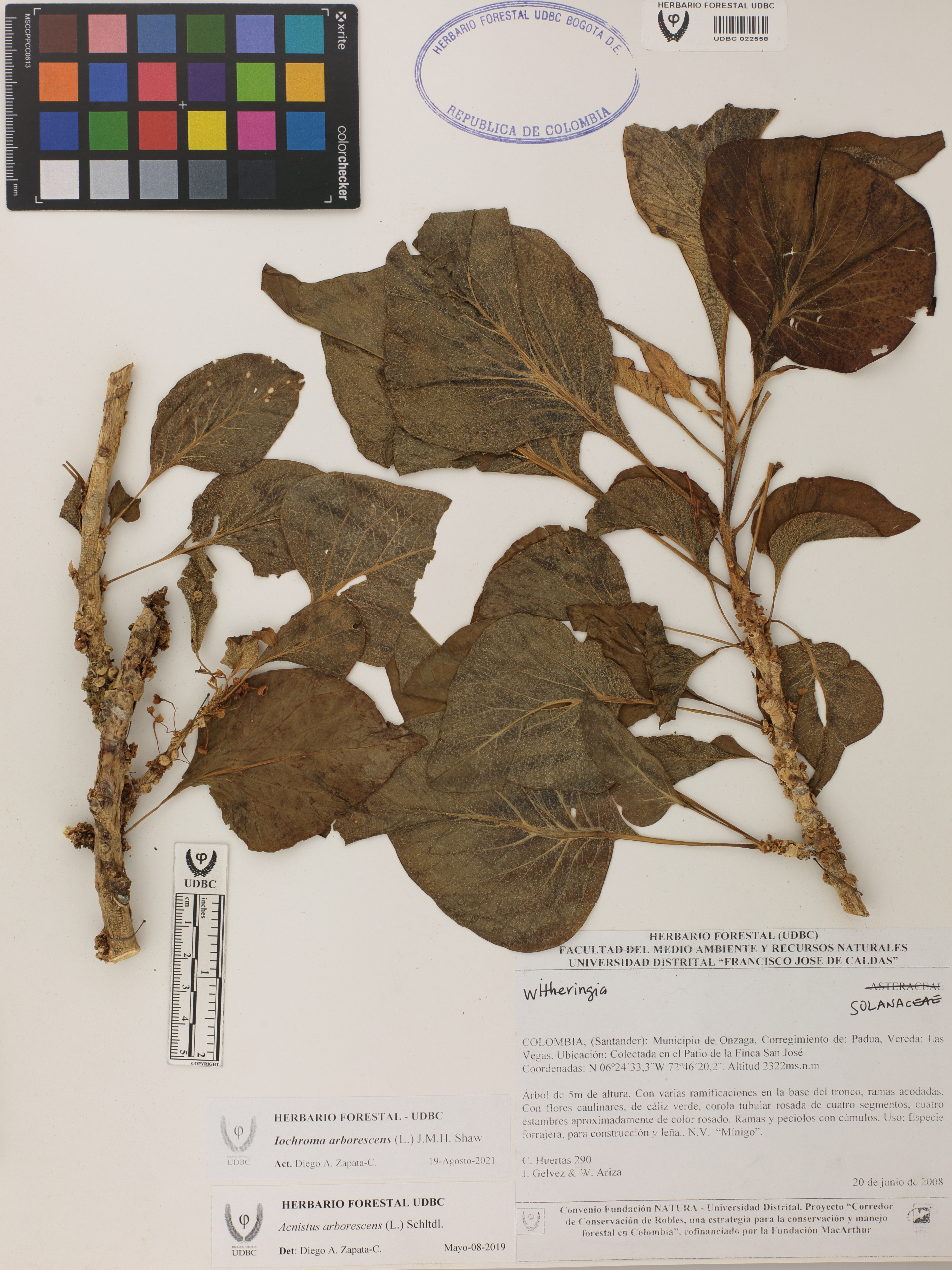 Fotografía del ejemplar Huertas, C. 290, determinado como Iochroma arborescens en el año 2019
