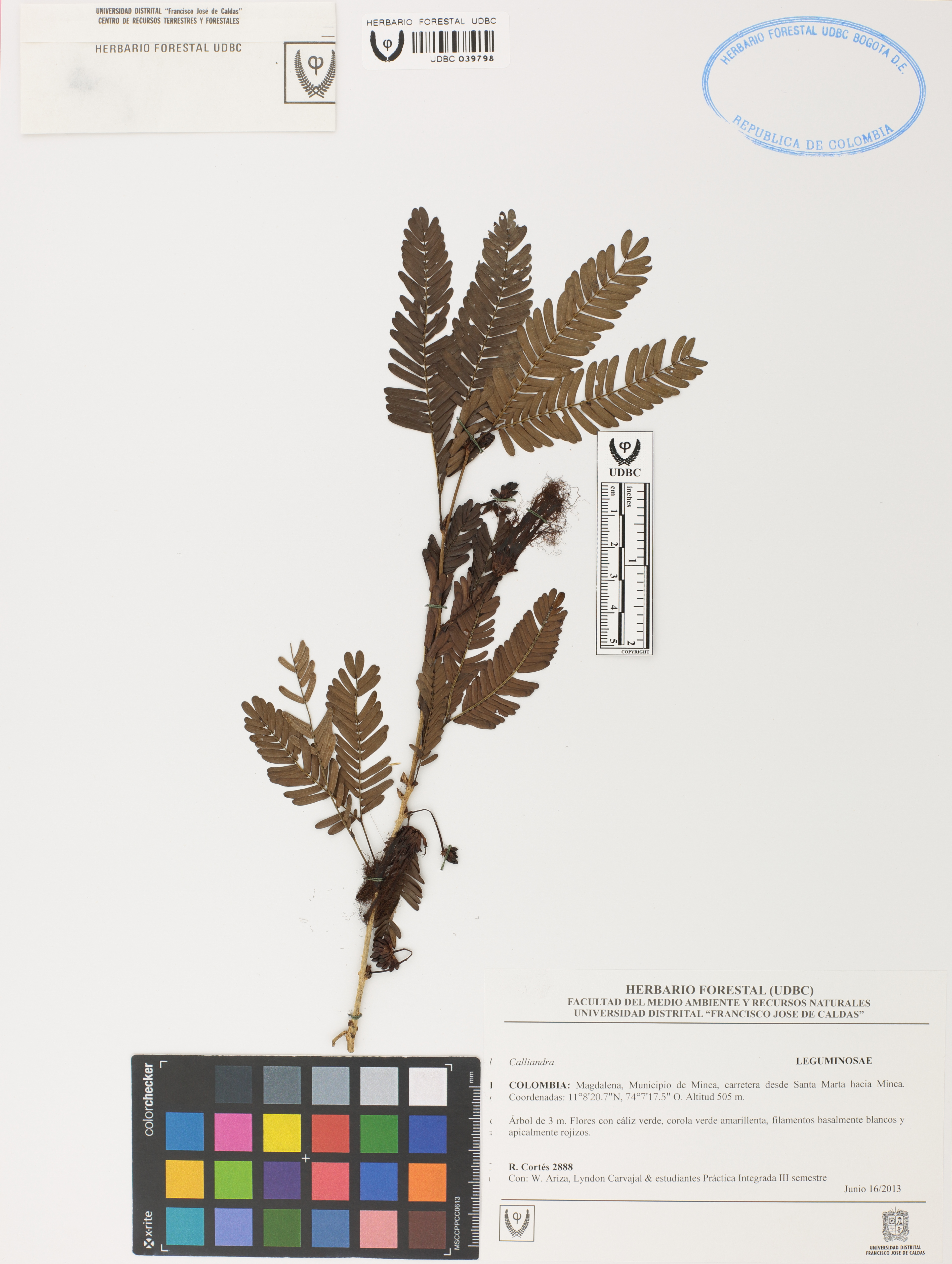 Fotografía del ejemplar Cortés, R. 2888, determinado como Calliandra sp.