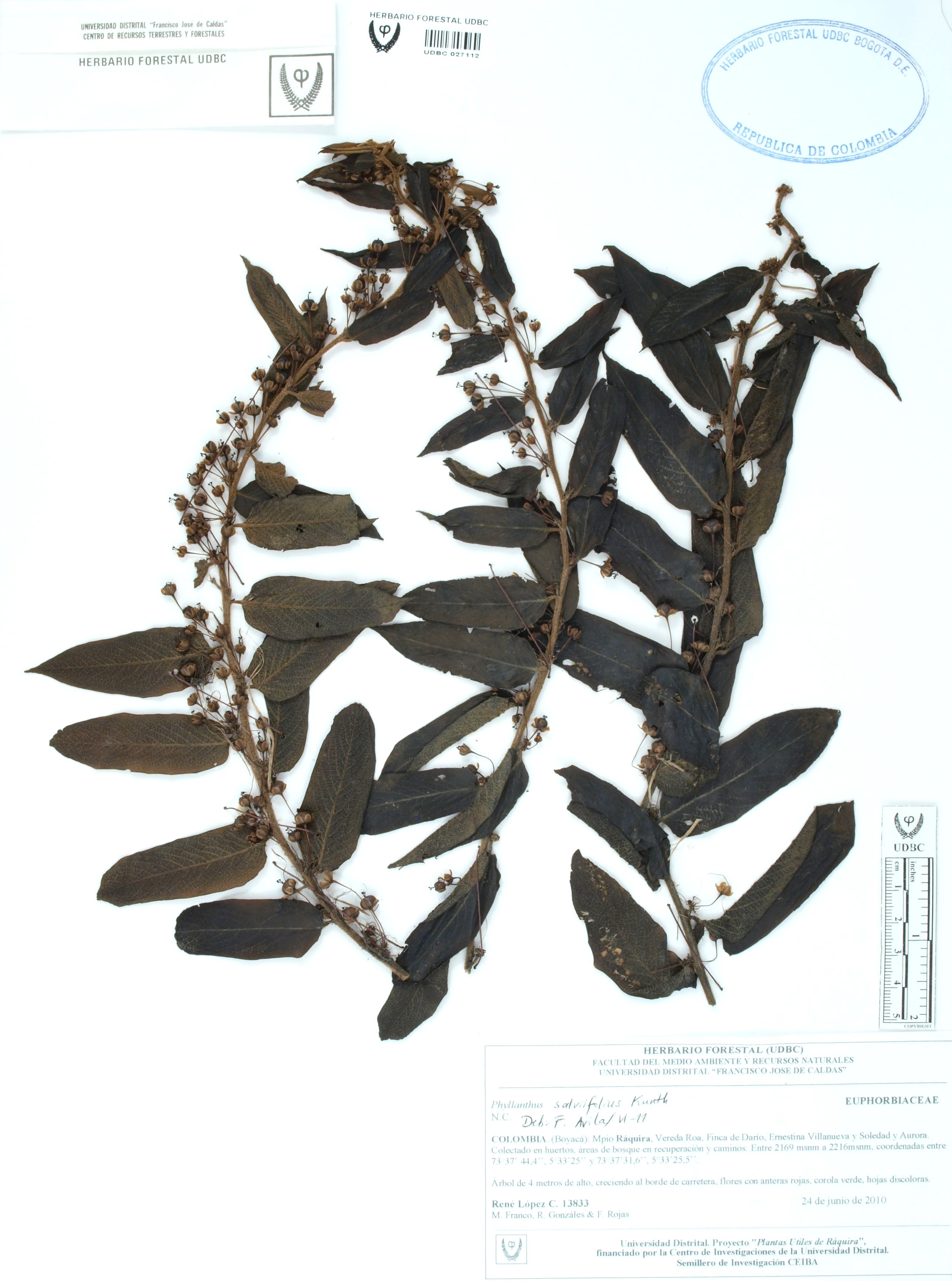 Fotografía del ejemplar López, R. 13833, determinado como Phyllanthus salviifolius en el año 2011