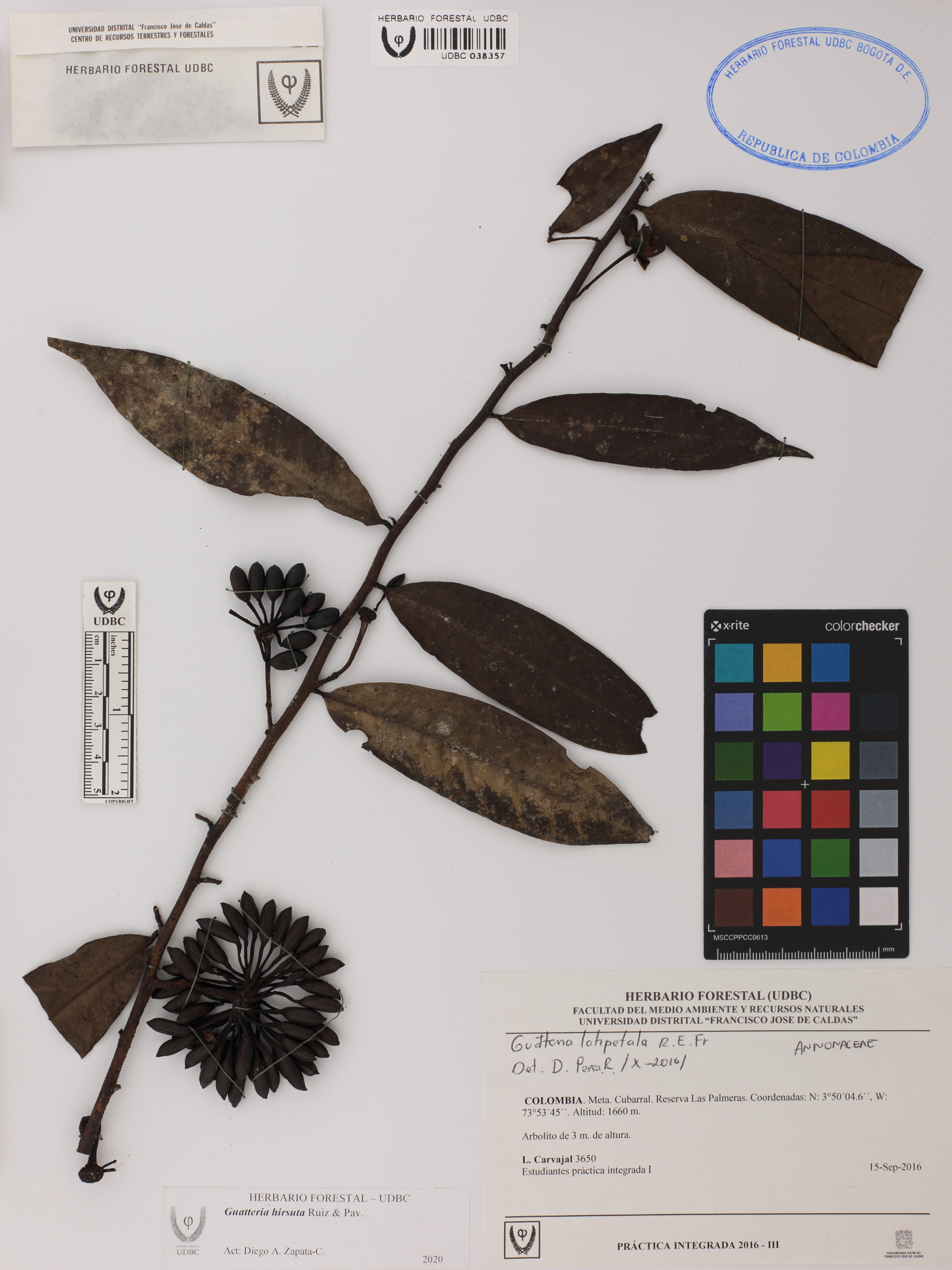 | dc.description | Fotografía del ejemplar Carvajal, L. 3650, determinado como Guatteria hirsuta en el año 2020 | |