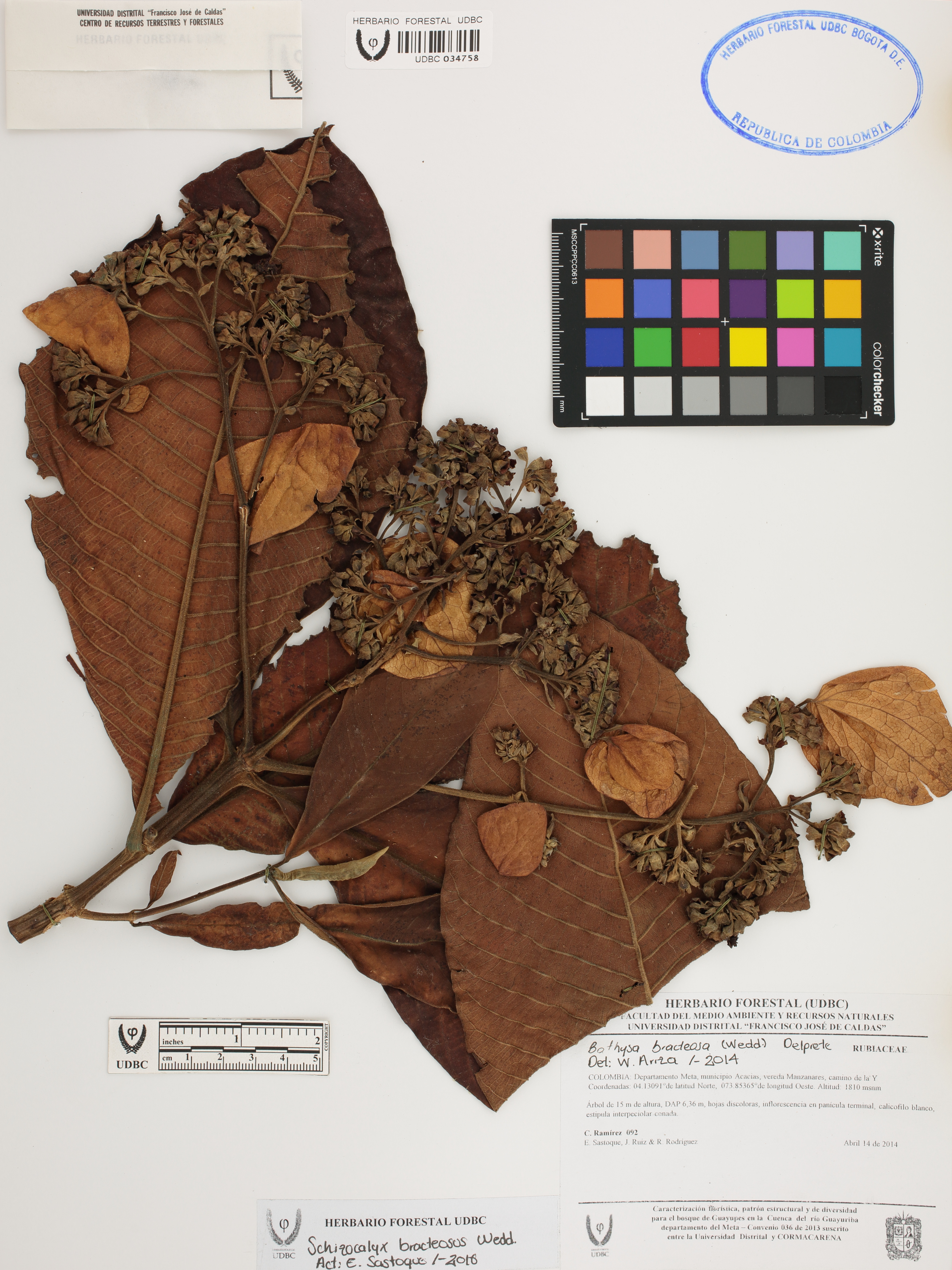 Fotografía del ejemplar Ramírez, C. 92, determinado como Schizocalyx bracteosus en el año 2016