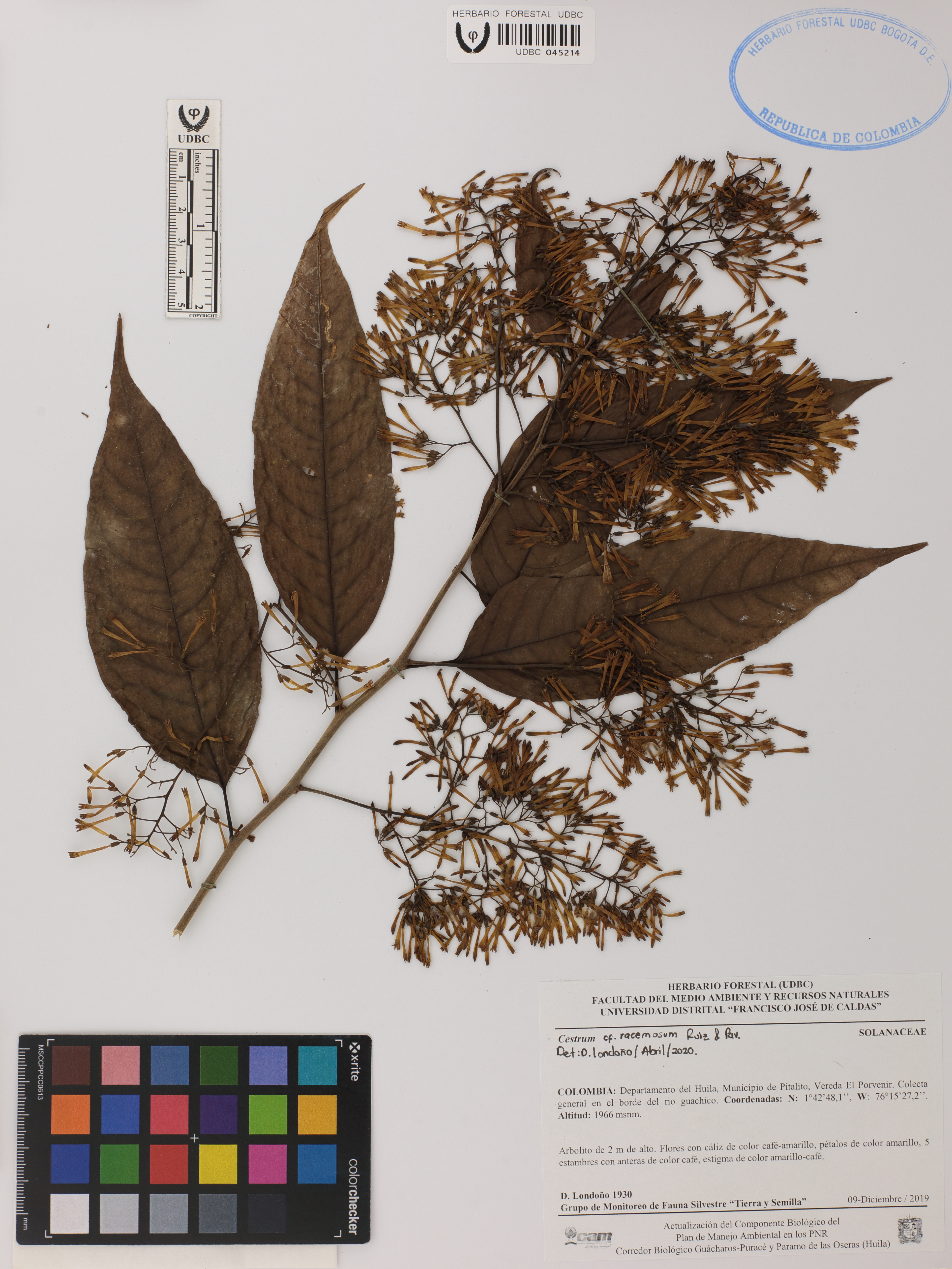 Fotografía del ejemplar Londoño, D. 1930, determinado como Cestrum racemosum en el año 2020