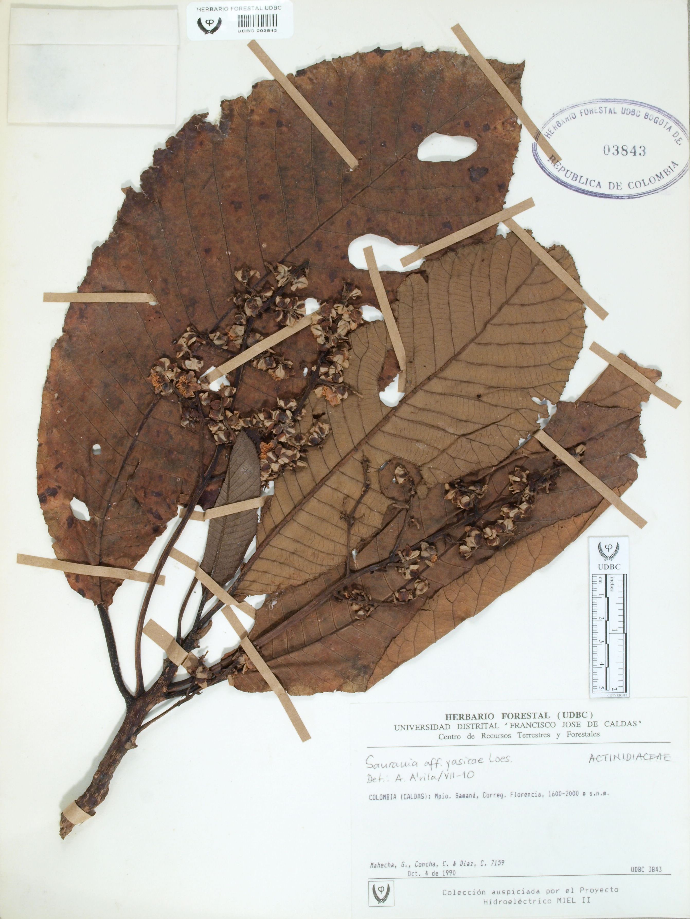 Fotografía del ejemplar Mahecha, G. 7159, determinado como Saurauia yasicae en el año 2010